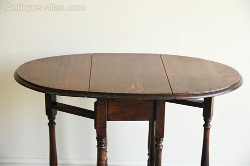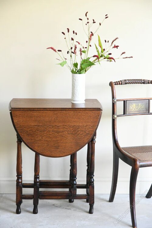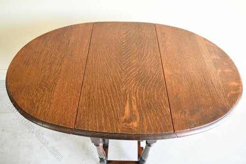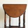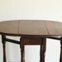 Small Oval Oak Drop Leaf Table. Early 20th Century drop leaf occasional table, solid oak oval top with pair of drop leaves on turned gate legs.