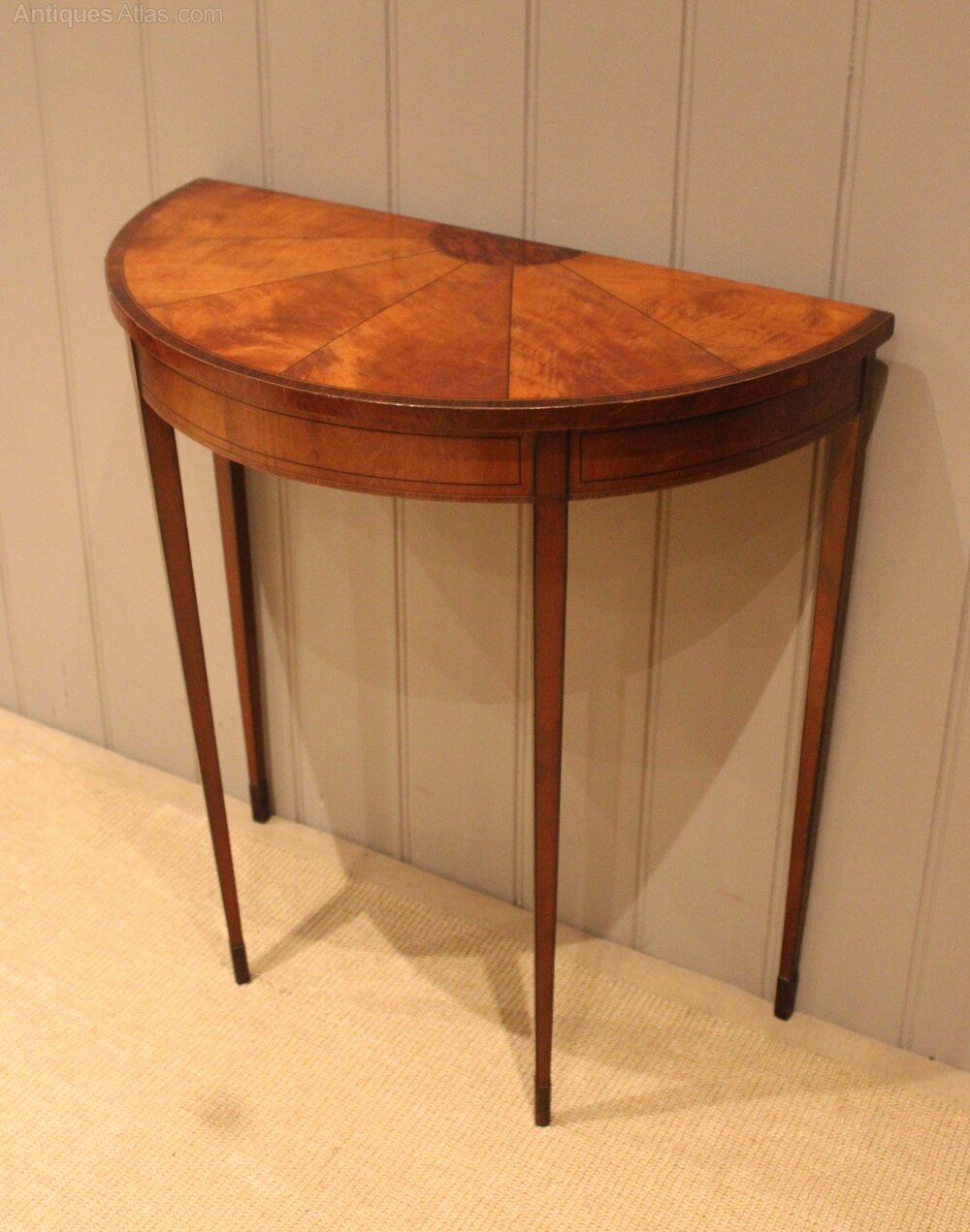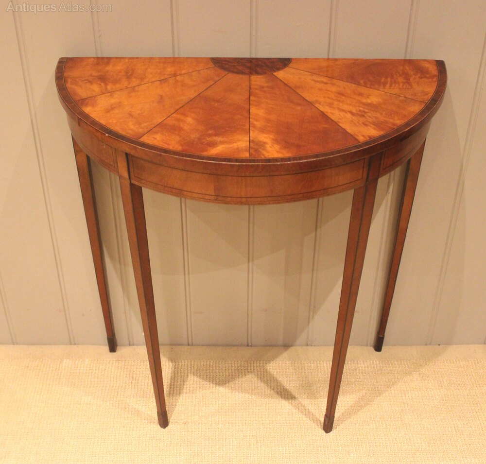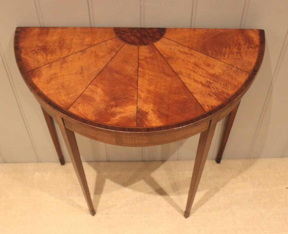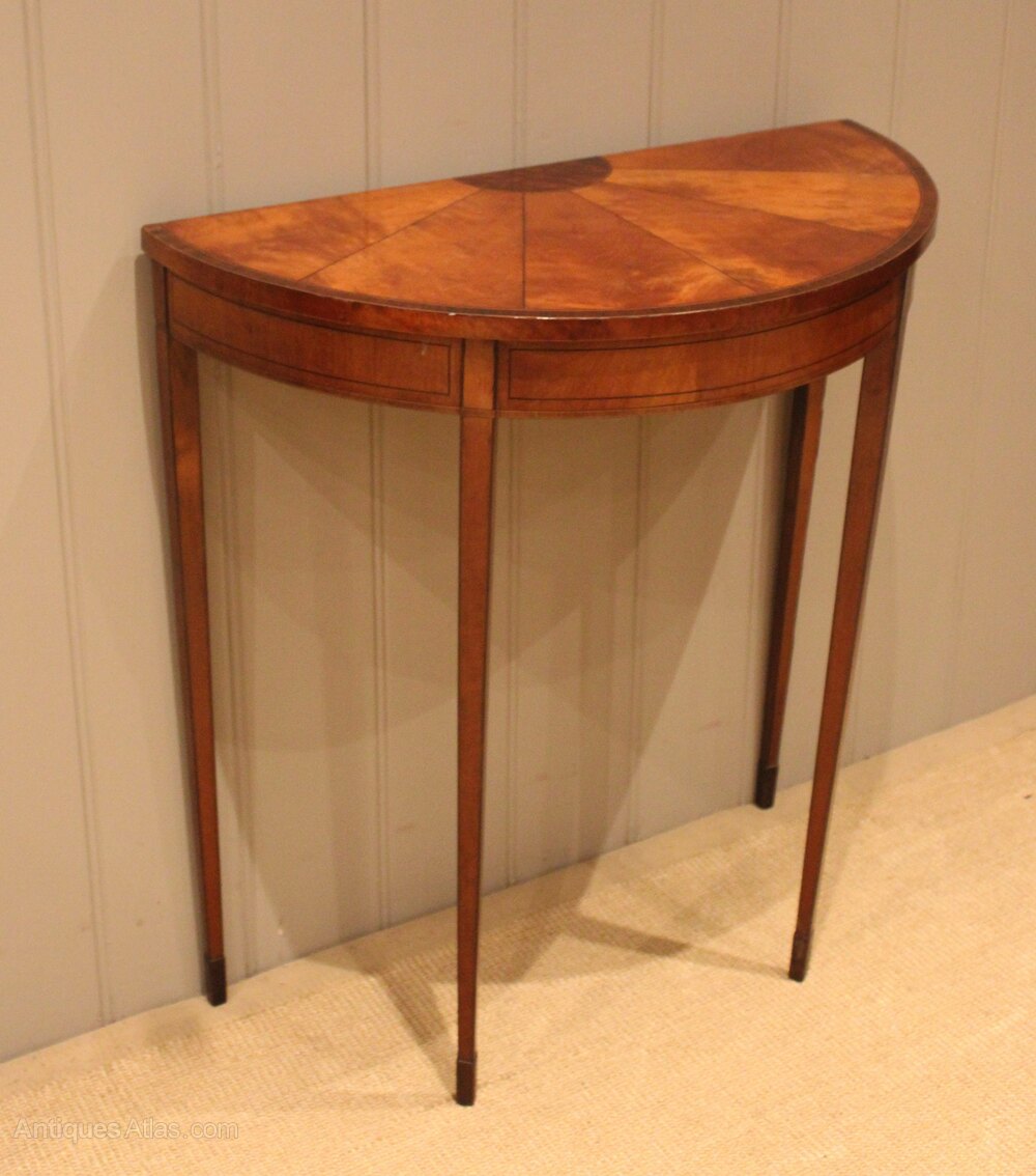 Small Sheraton Satinwood Demi Lune Console Table