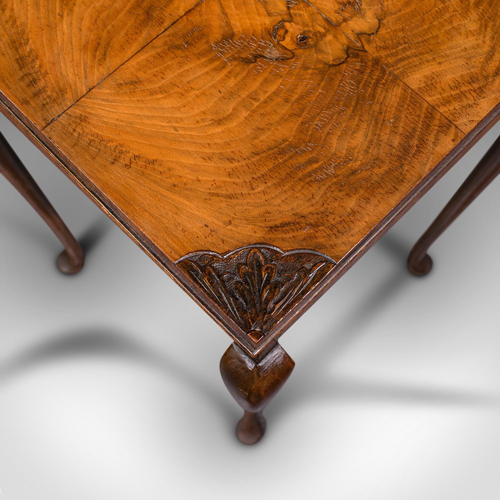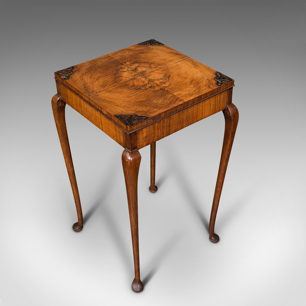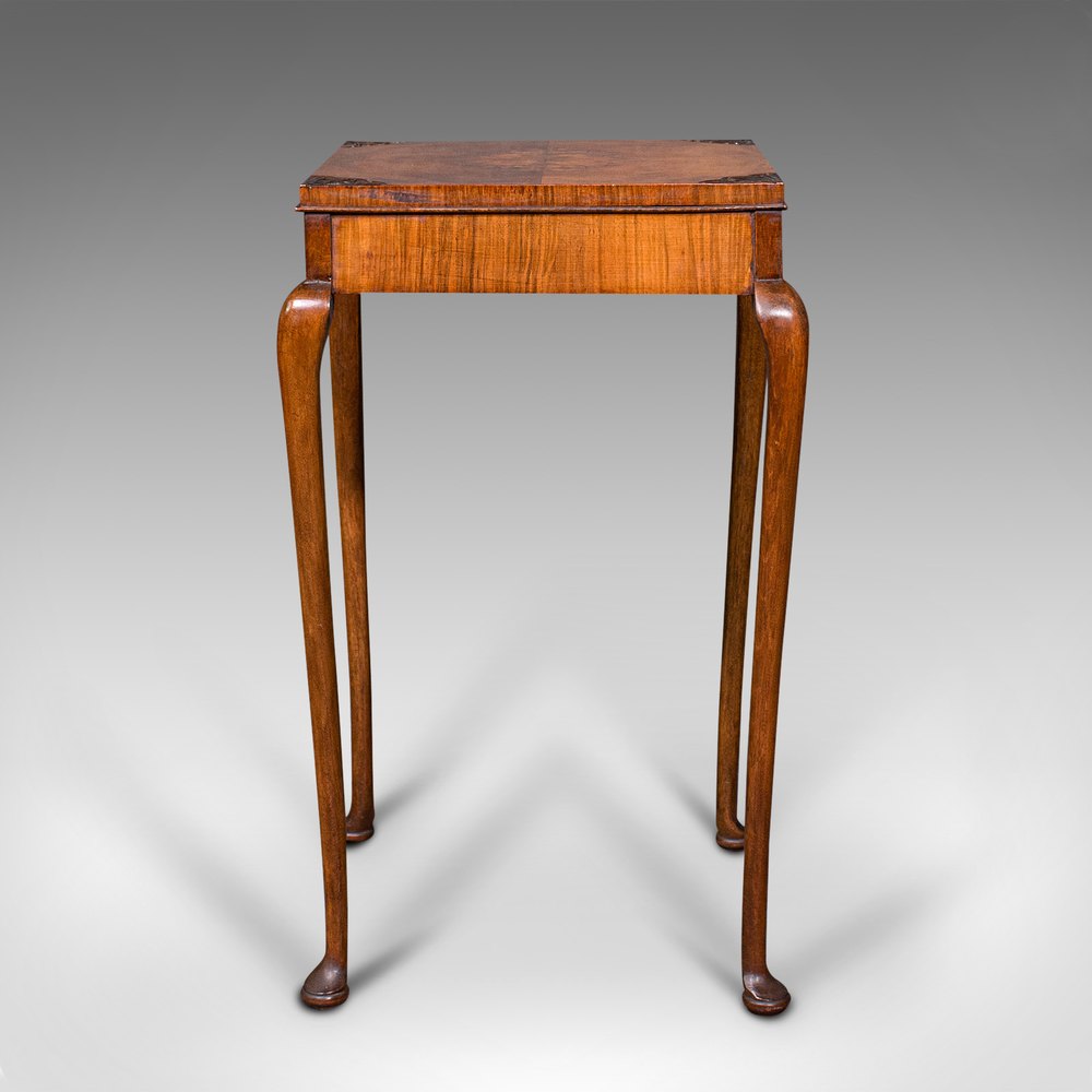 This is a small vintage lamp table. An English, walnut side or occasional hall table, dating to the Art Deco period, circa 1930.