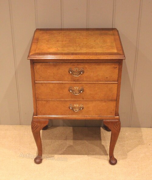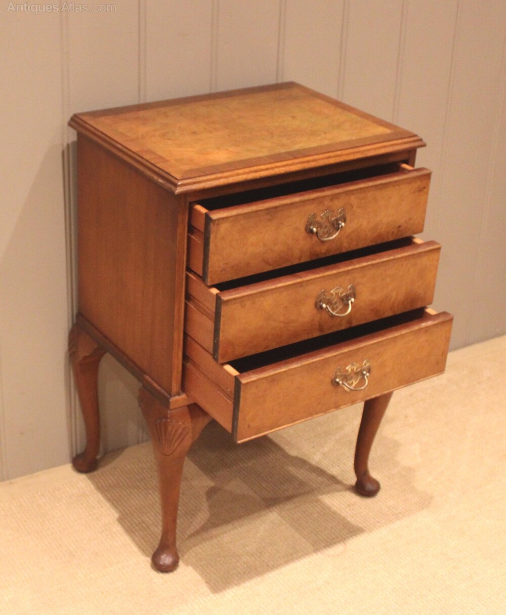 Small proportioned walnut chest of three drawers , raised on cabriole legs