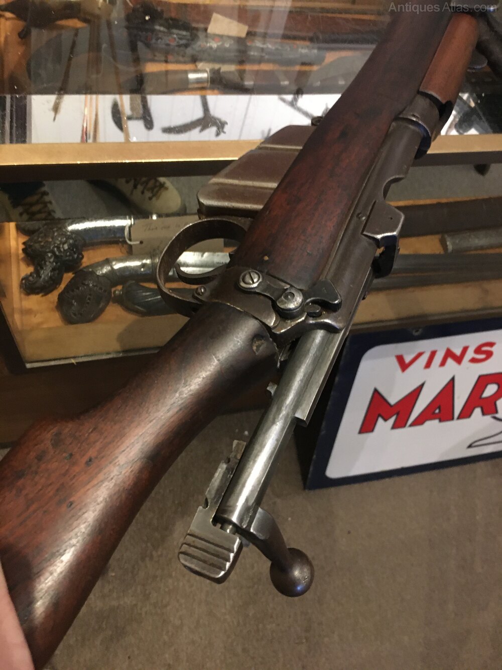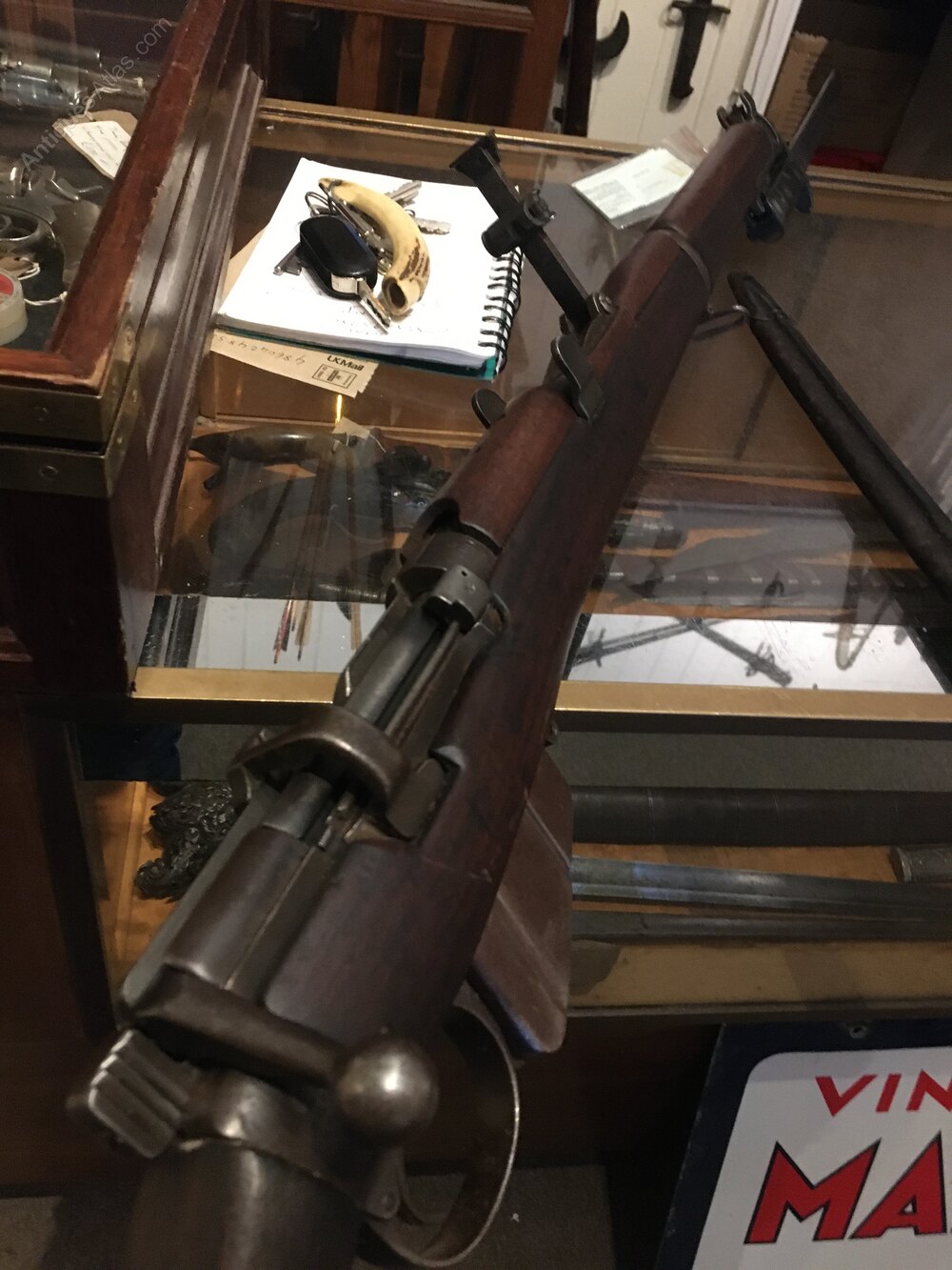 Short magazine lee Enfield by BSA . With bayonet scabbard sling and pull through dry fires good working order does everything it should apart from fire. Sling and pull through not shown