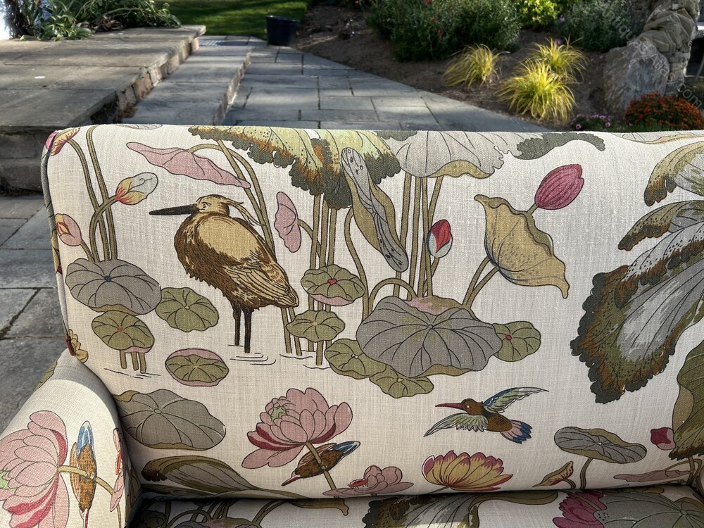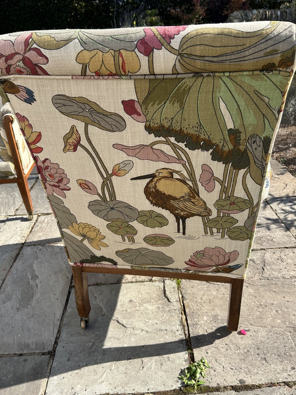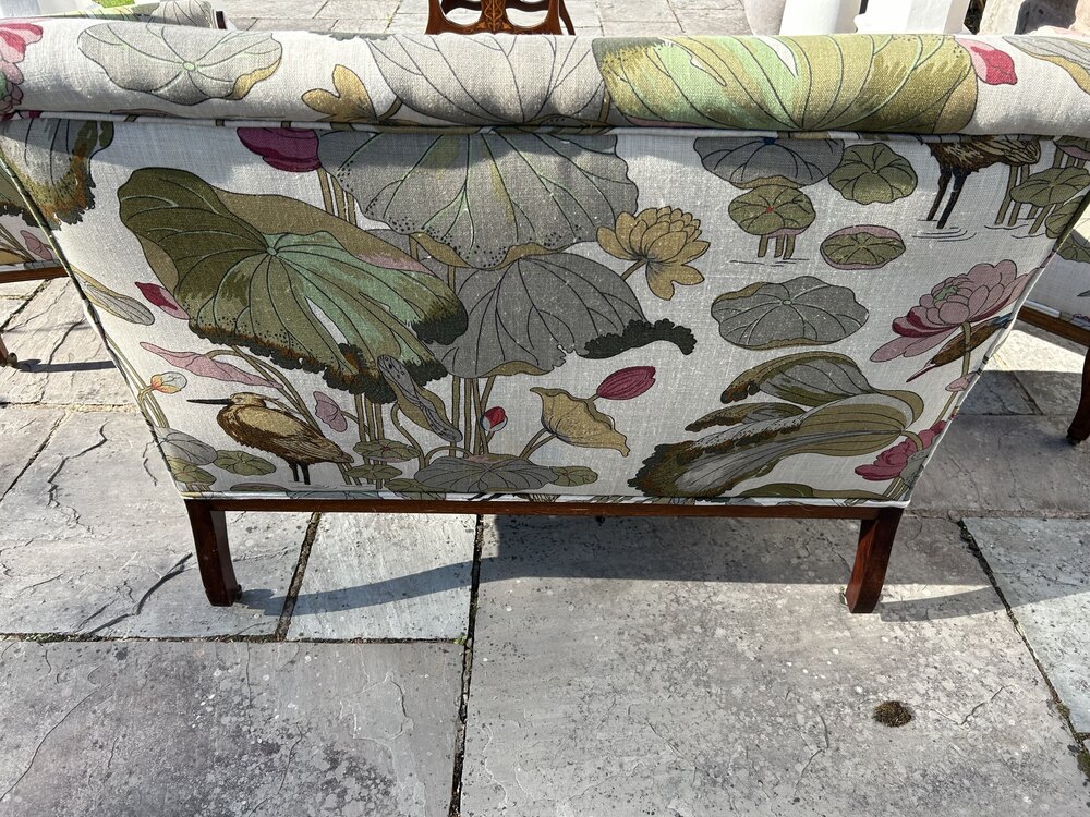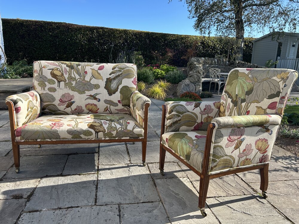 Stunning Three Piece Edwardian Drawing Room Suite. Restored in Baker fabric £120/m.