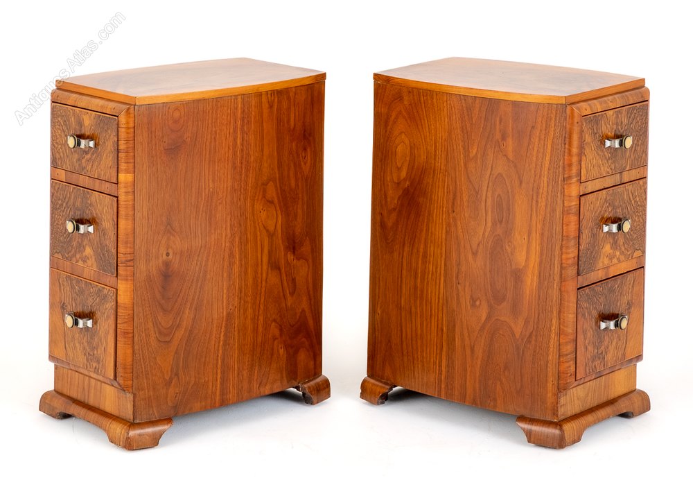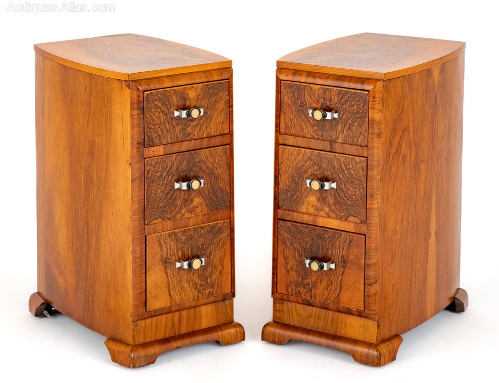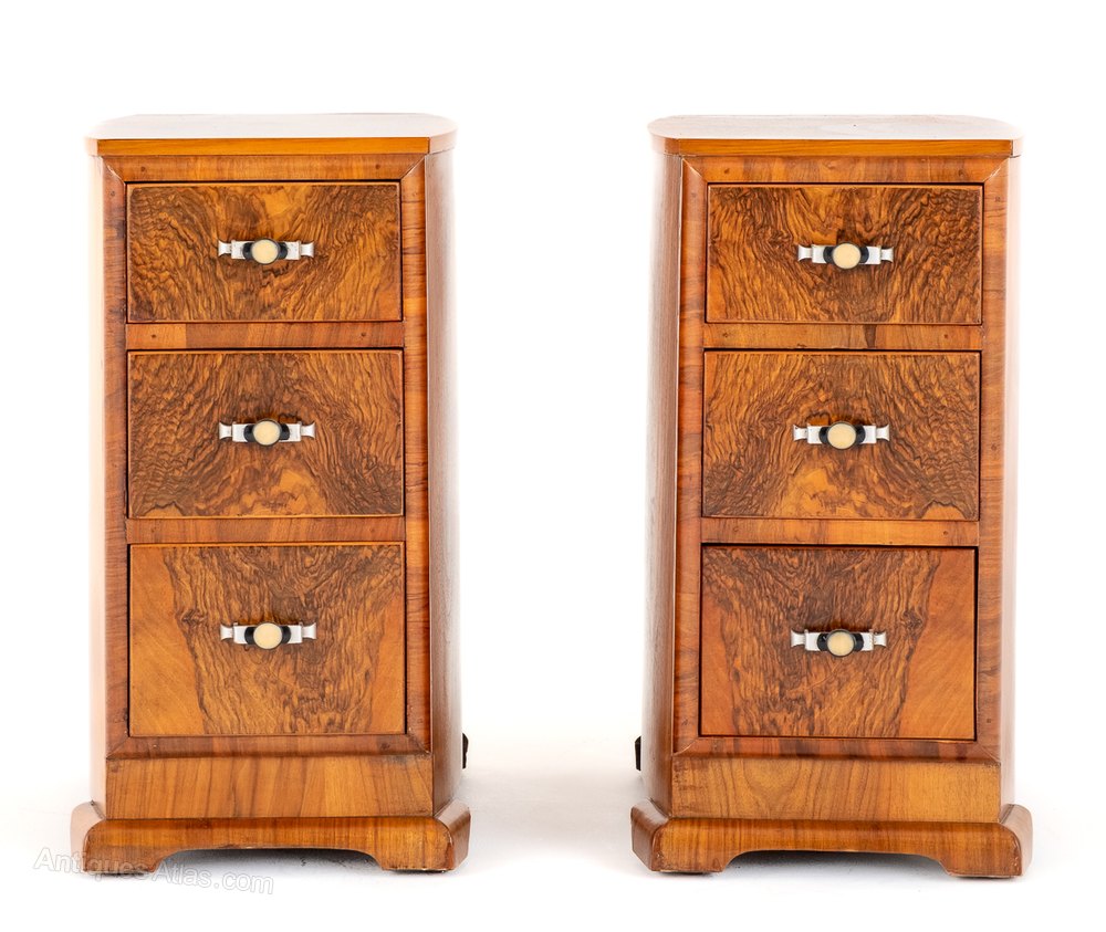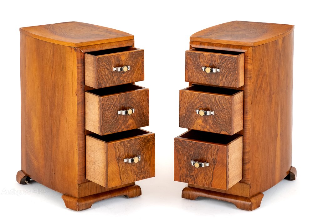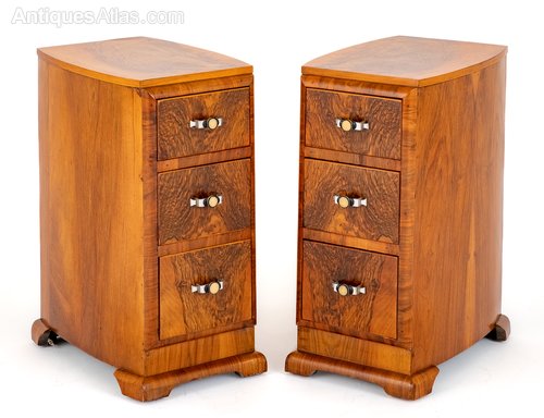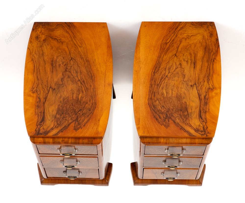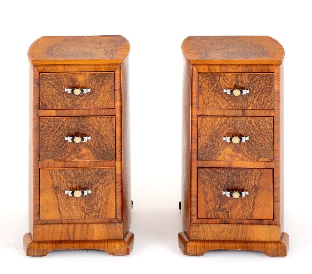 Art Deco Matching Pair Of Walnut Bedside Cabinets