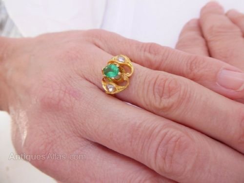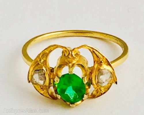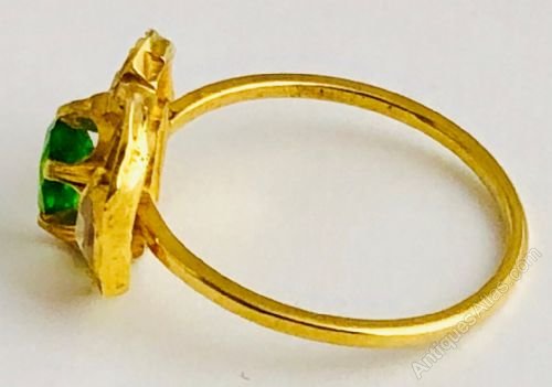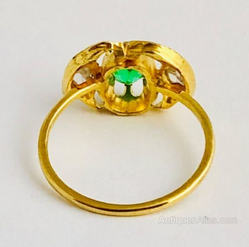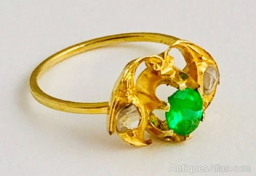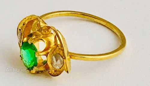 Super 18ct Gold Emerald And Rose Cut Diamond Ring