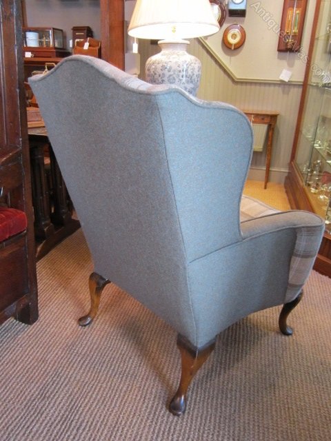 A Superior Mid Victorian upholstered wing back armchair.c.1870. Original horse hair upholstery to the well shaped frame. Feather filled loose cushion seat. Recovered to a high standard in Abraham Moon pure wool. Standing on walnut cabriole shaped legs. Measures 35" x 35" x 42.5"high.