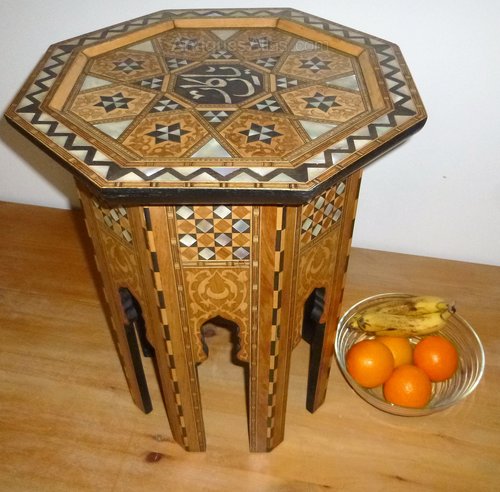 A Middle Eastern Moorish Octagonal Inlaid hardwood table / Tabouret