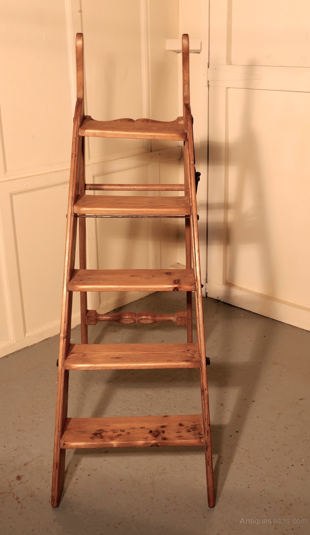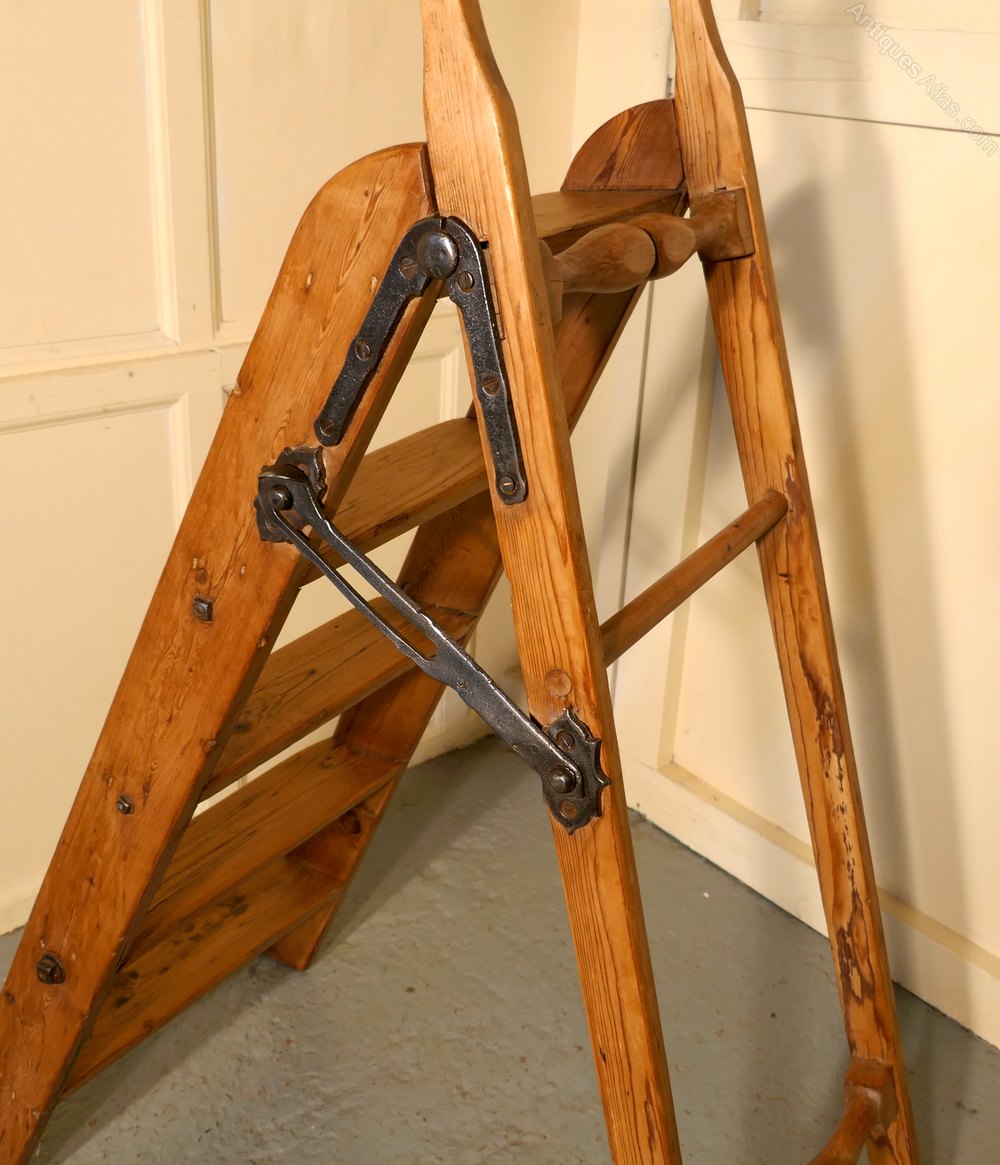 This is a very useful and attractive piece, the step ladder has 5, 4.5” treads, it folds flat for handy storage and would work well in a kitchen, shop, library or anywhere where a little extra height would help