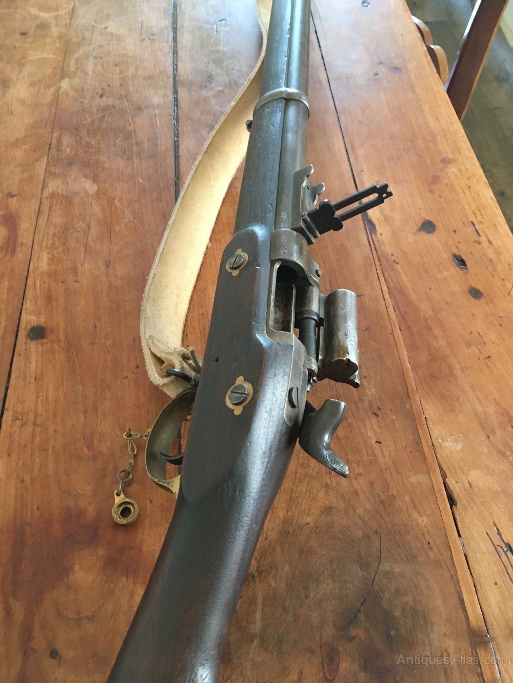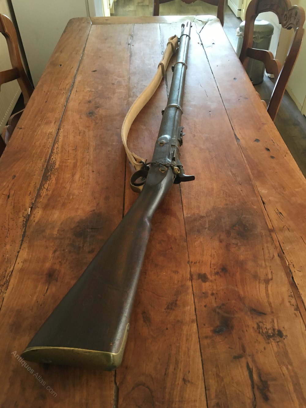 A three band snider “ London arms Co “ marked on lock LA&co 1863 with Victorian crown.numerous markings on the gun . The brass butt plate large 29 above 60 the butt stamped DC . Mahogany stock lots of the original bluing on lock hammer barrel/bands, buff white strap brass nipple guard . Action good solid works well , crisp solid lock on both half and full cock. Stock has very little bruising. Probably a .450