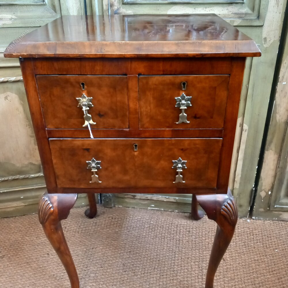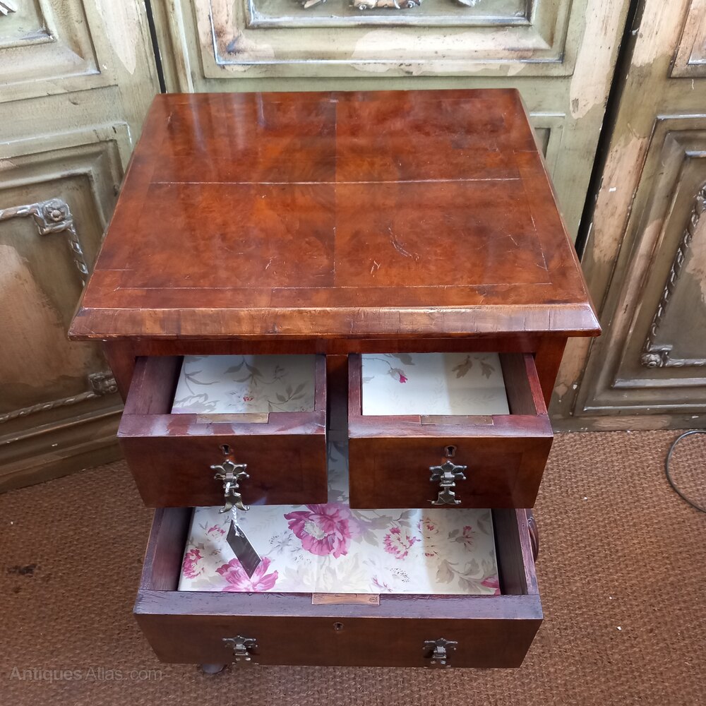 A good mahogany and burr walnut three drawer chest with a concealed side slide IN THE Georgian style. A very useful chest for its size with its 3 deep drawers. Would work well as an occasional chest table around the home.