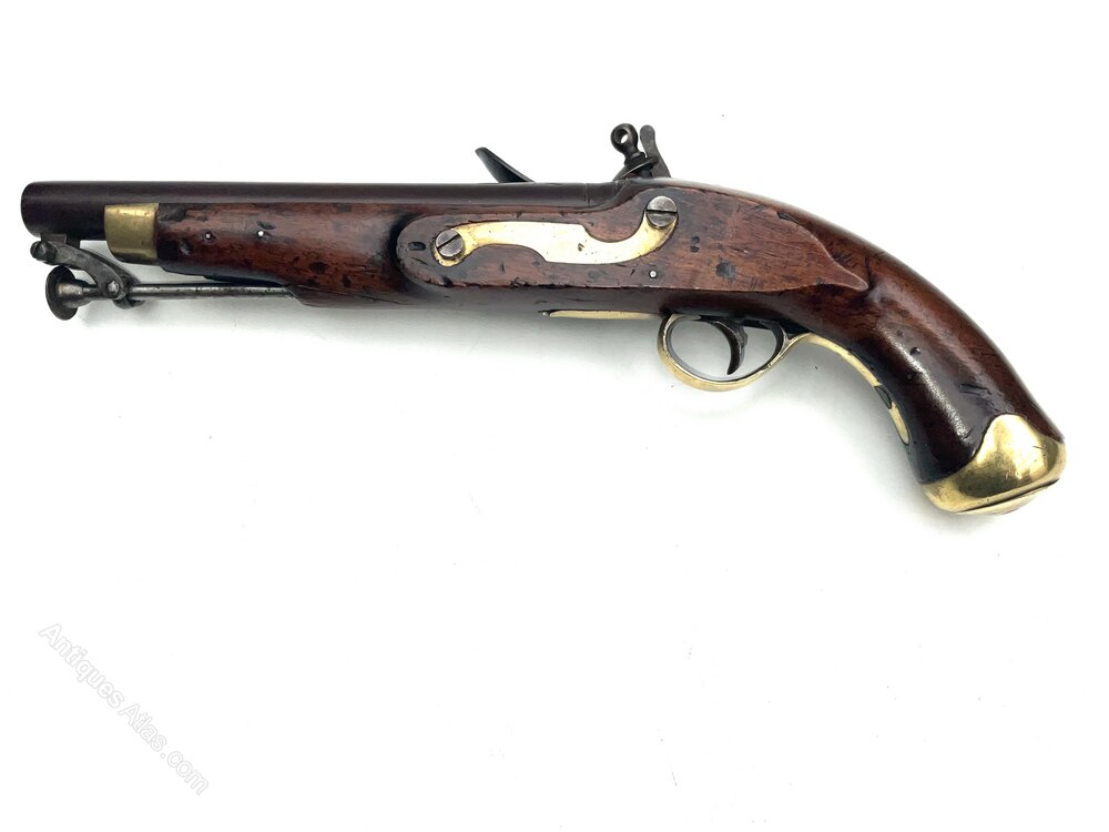 A nice example of a Napoleonic period British military, Tower flintlock Newland service pistol. Regulation walnut full stock with brass mounts and captured ramrod, length 39 cm overall. The 32 cm, .64 calibre steel barrel with proof marks and acceptance stamp. A good strong working lock with Tower, GR under Crown and acceptance stamp. The overall condition of the pistol is very good, bought from the family of British officer who served in the 1812 war. offering free worldwide delivery reference DBSS