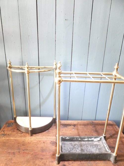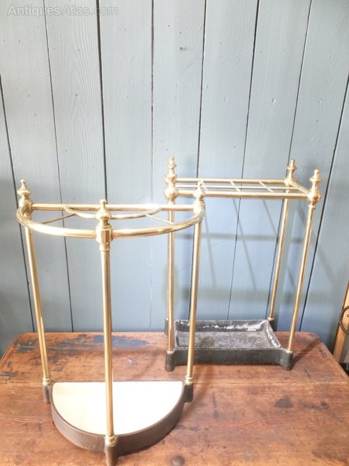 Stick stands: Two good late 19th century brass and cast iron stick or umbrella stands. Both in good condition with attractively turned finials.