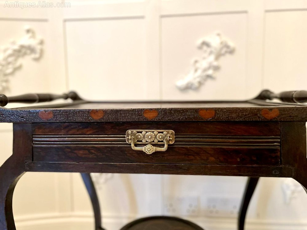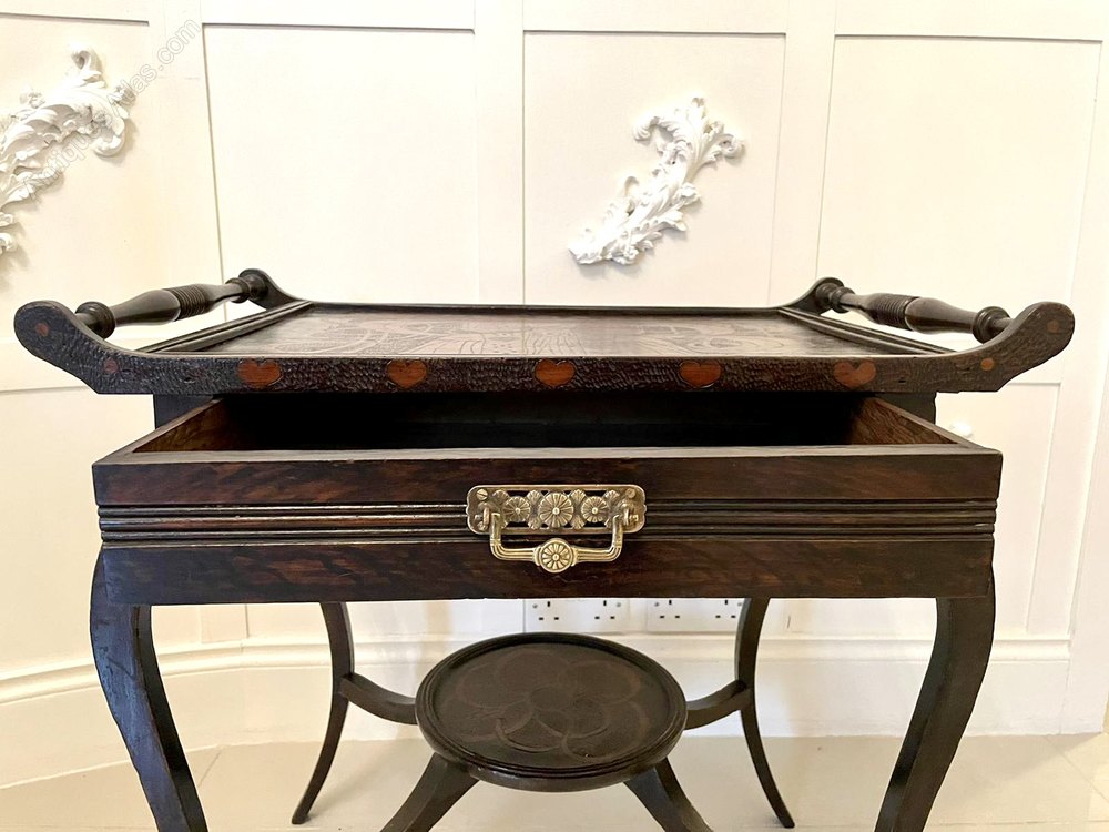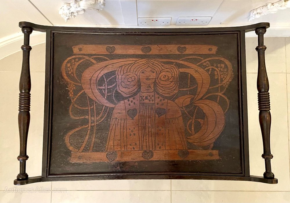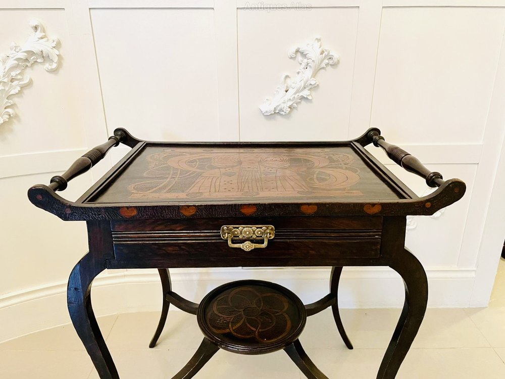 Unusual Arts & Crafts Pokerwork Lamp Side Table