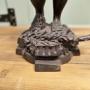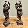 The statues are in good condition consistent with age and use they re 16” tall, 8” across and 5” deep