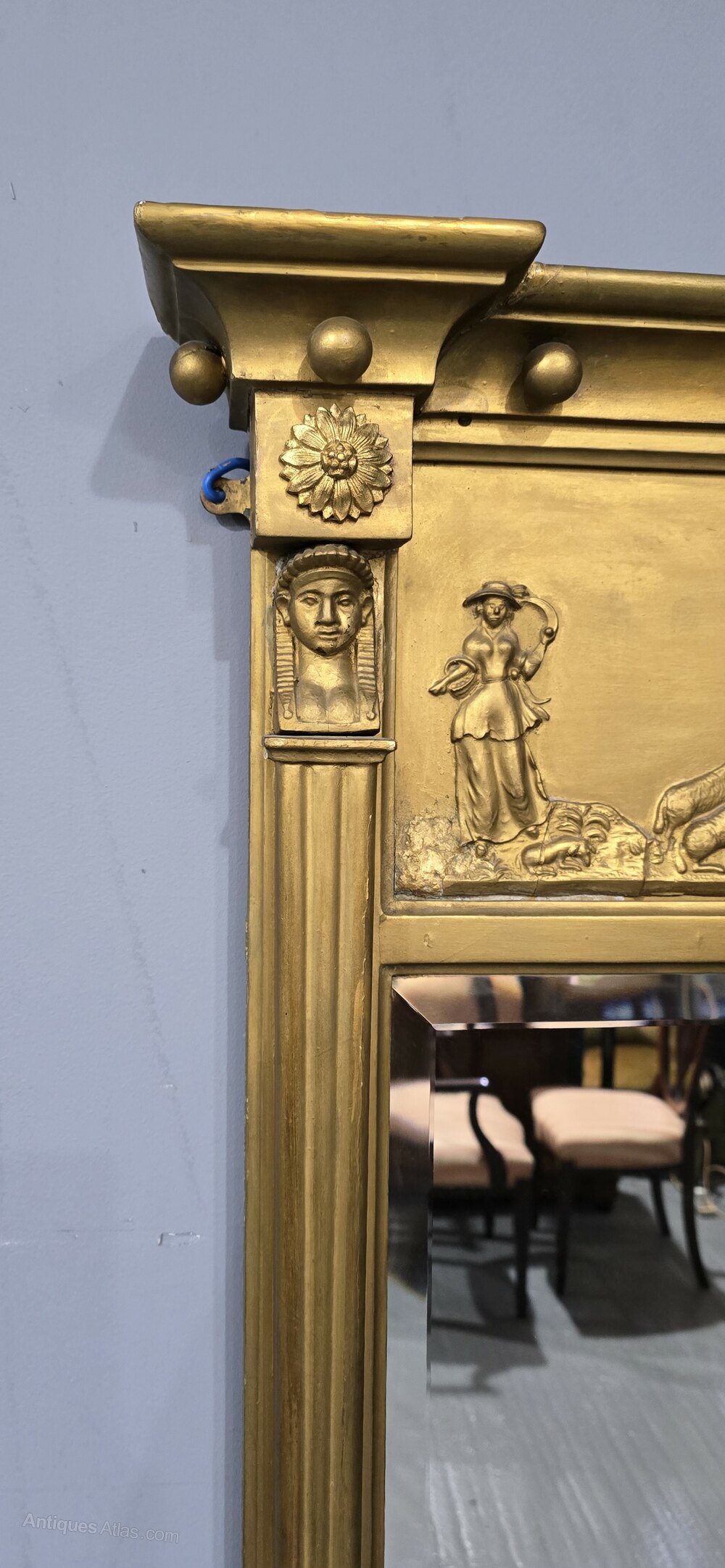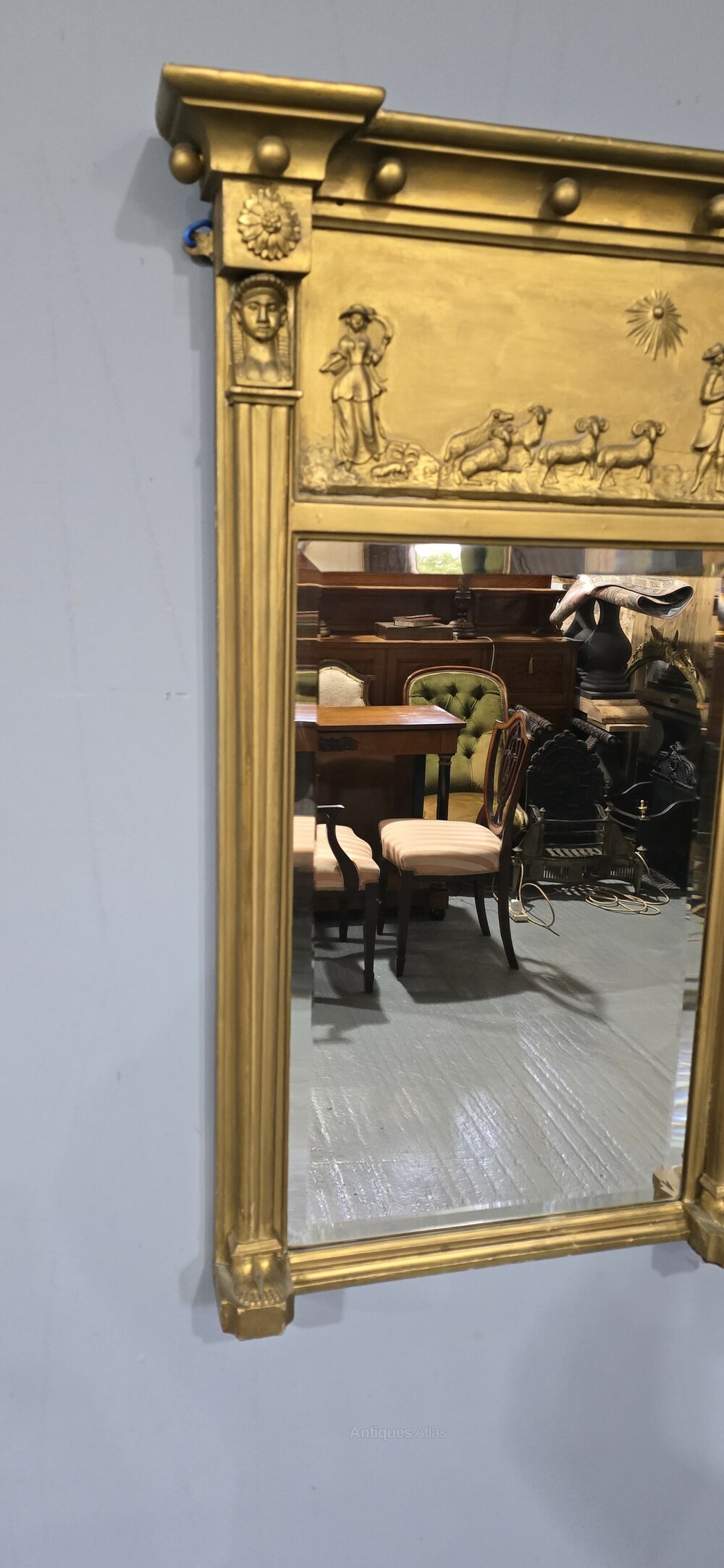 A lovely Regency gilt mirror with Egyption detailing and bevelled mirror, in overall very good condition.