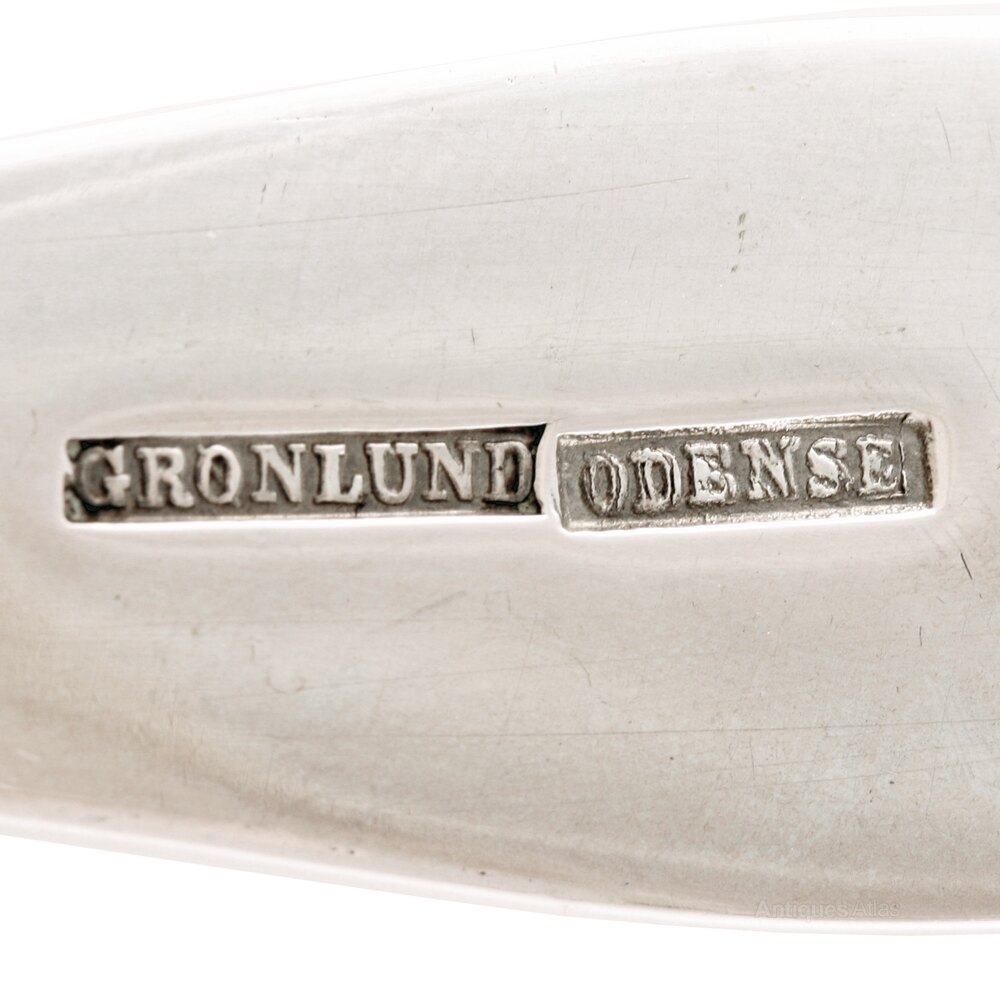 The spoon has a stamp on the back of the handle for the maker Grønlund of Odense.