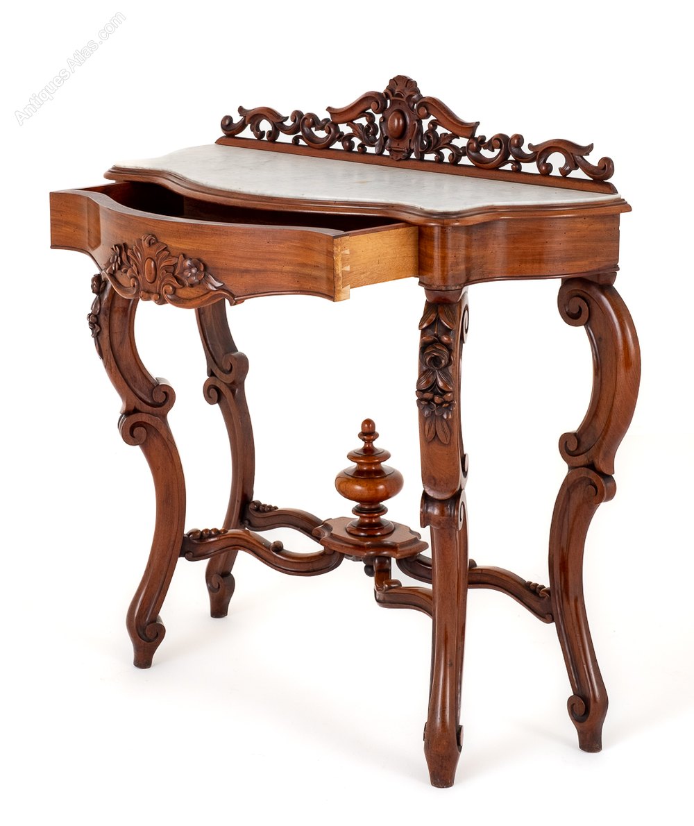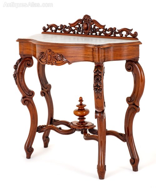 The Table Features a Marble Top and a Pretty Carved and Pierced Upstanding.