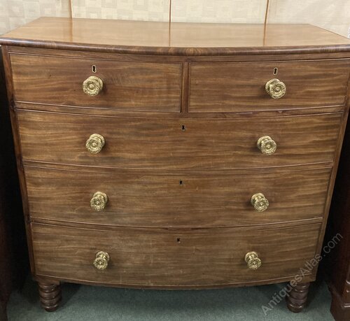 no-345-Victorian mahogany Bow-front chest of drawers (had had change of handles minor scratches on the top )in good condition