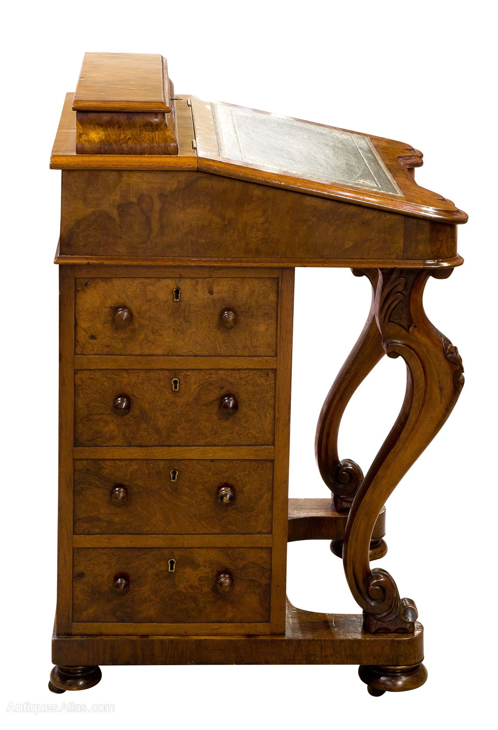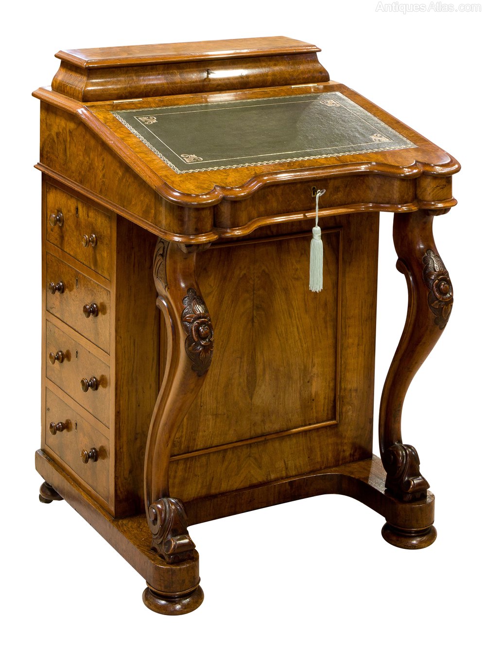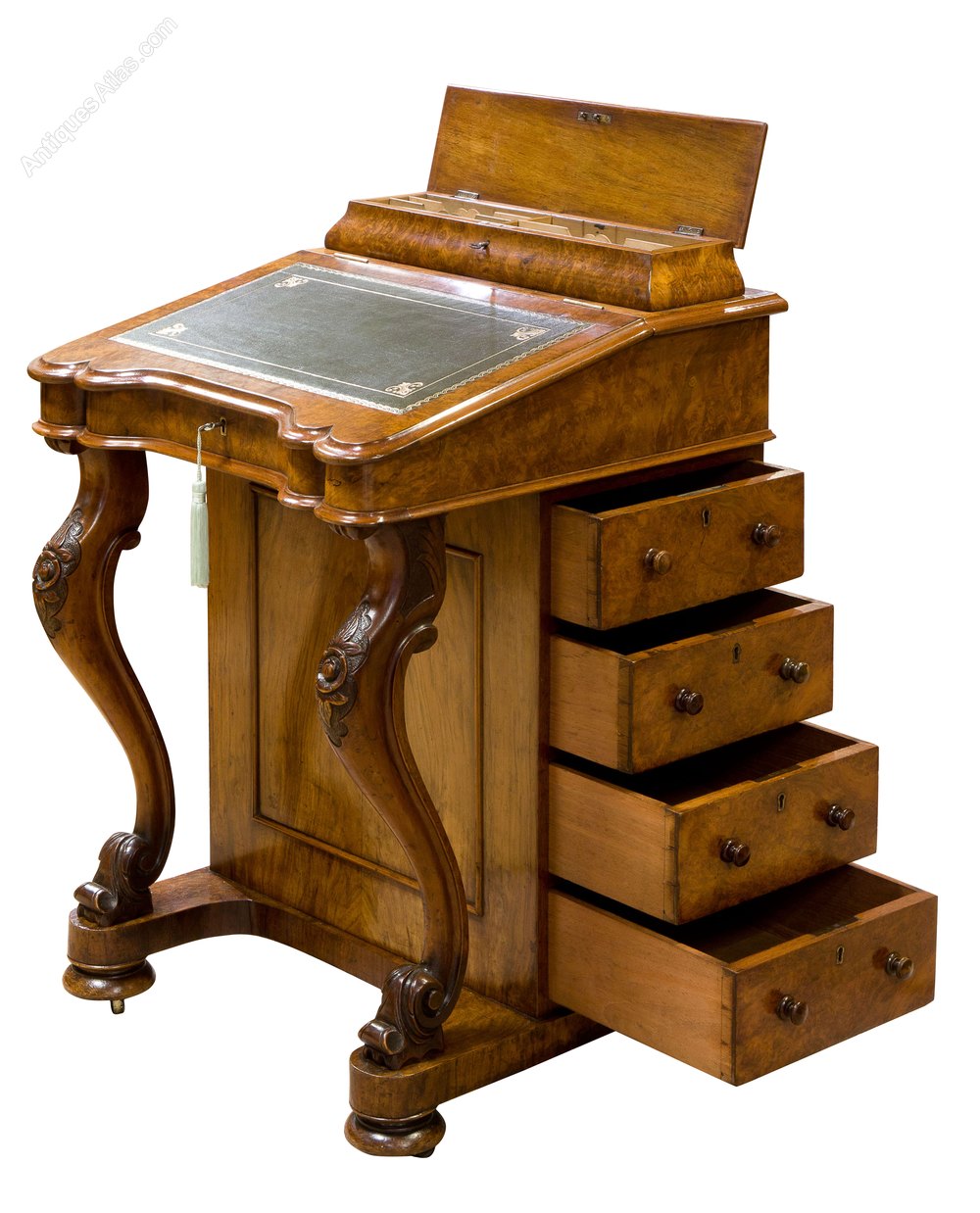 A fine Victorian burr & figured walnut Davenport with cabriole legs to the front