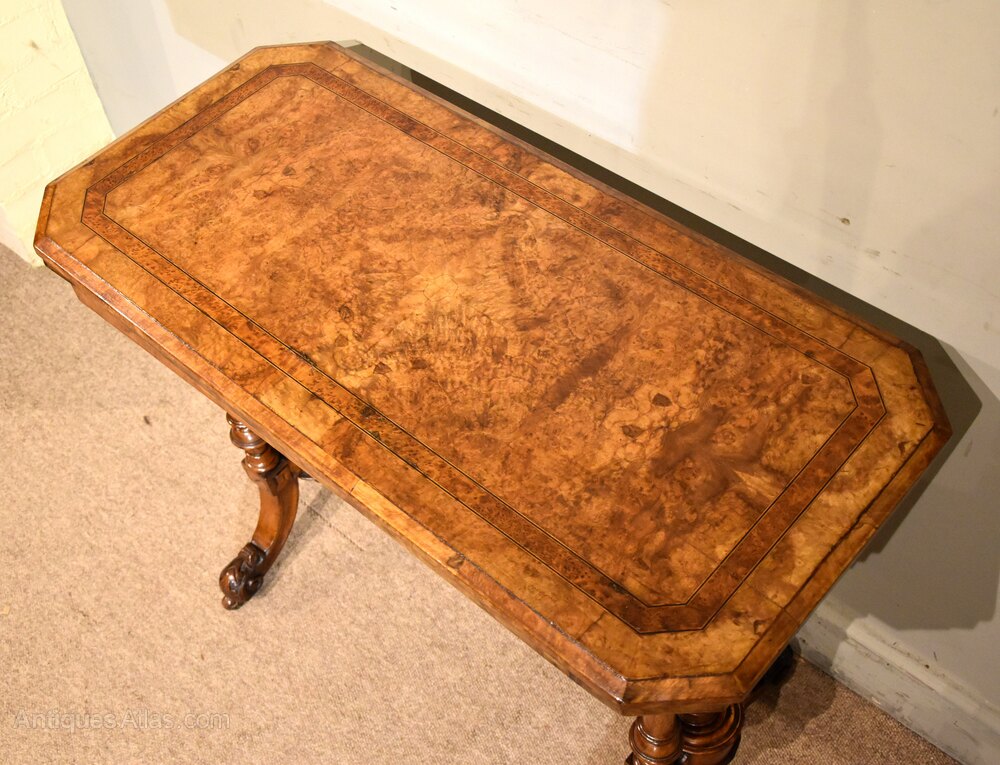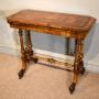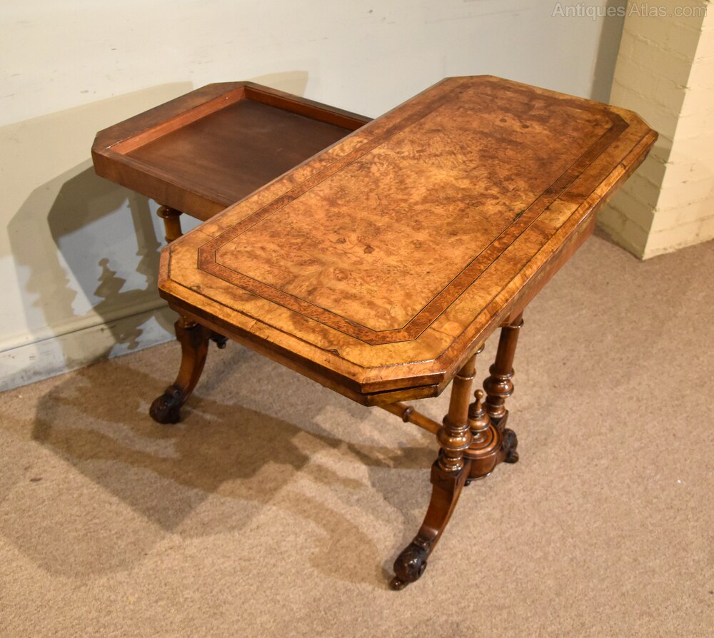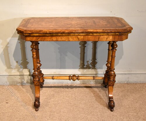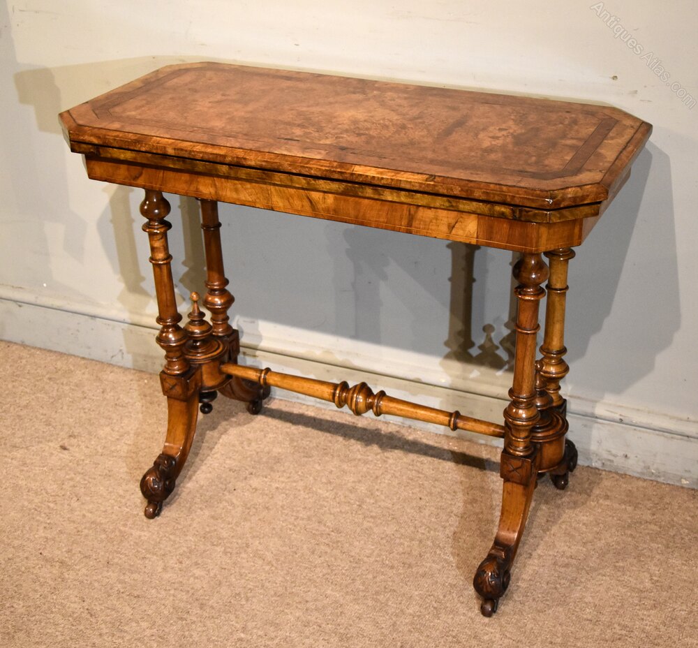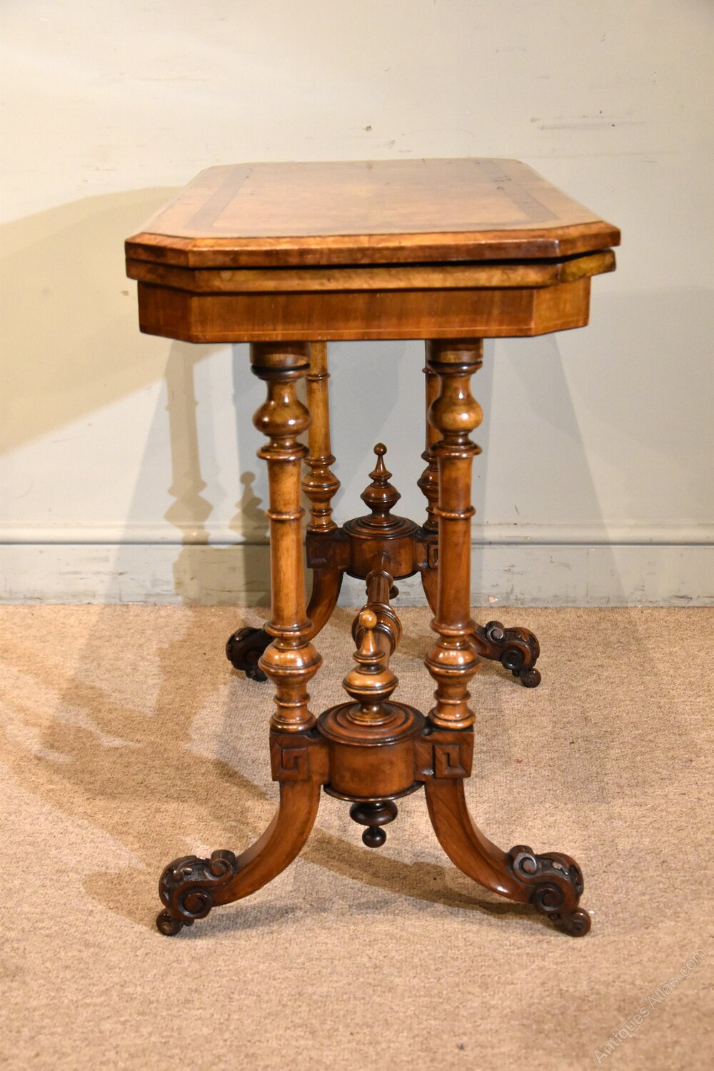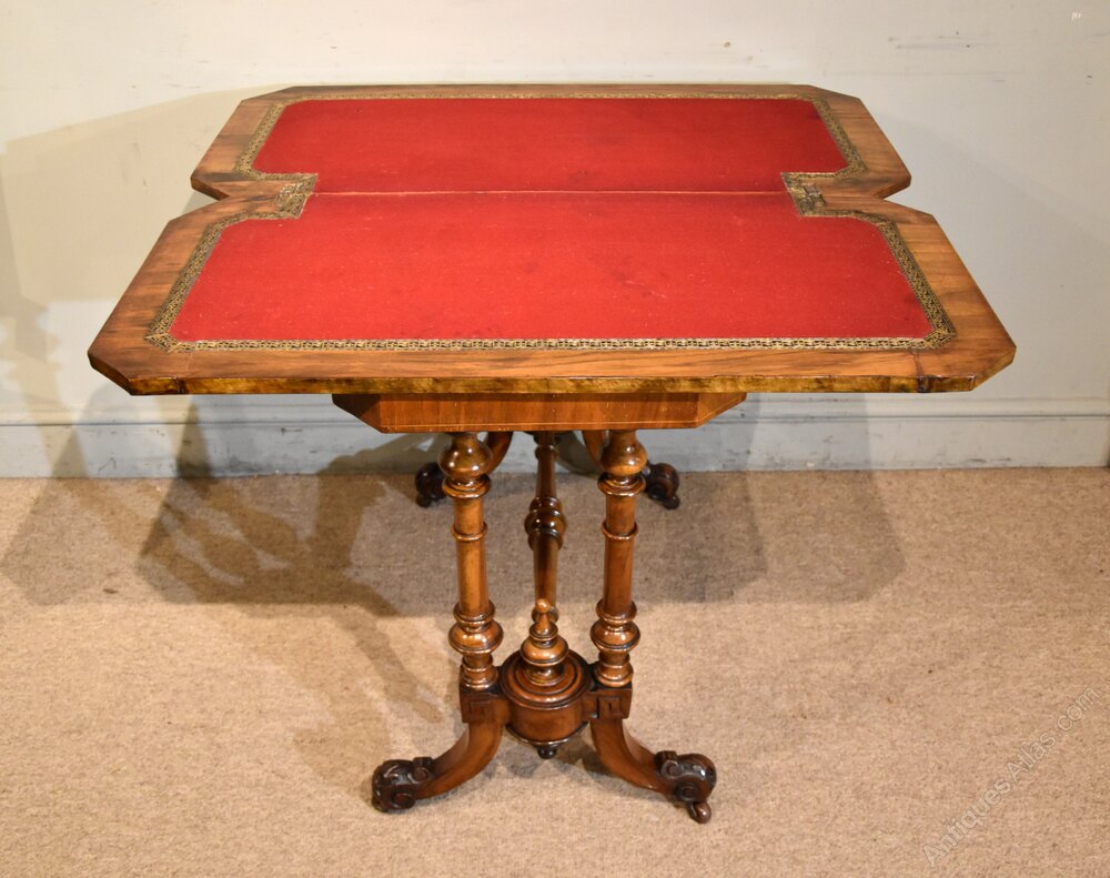 Victorian Burr walnut foldover card table with original castors and baize interior