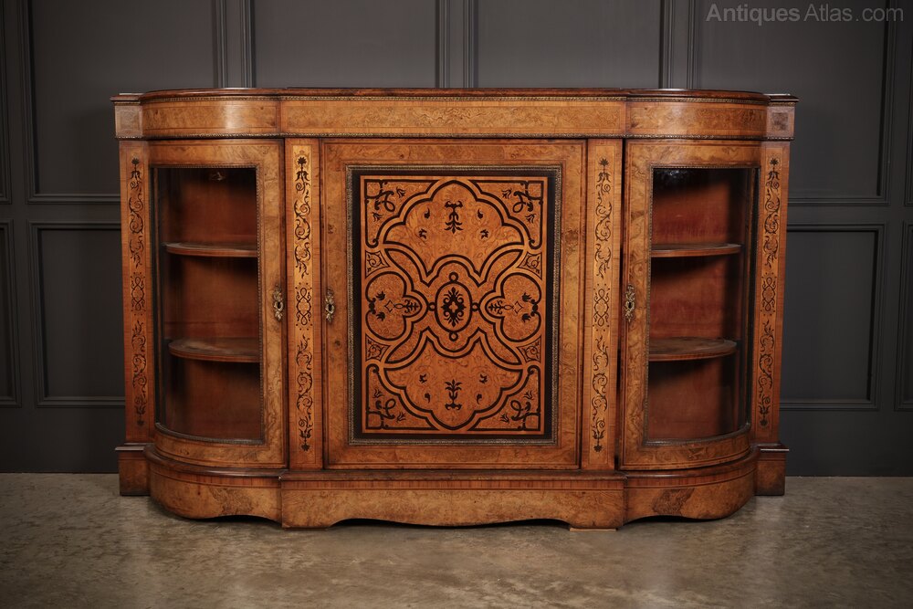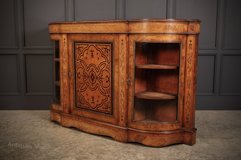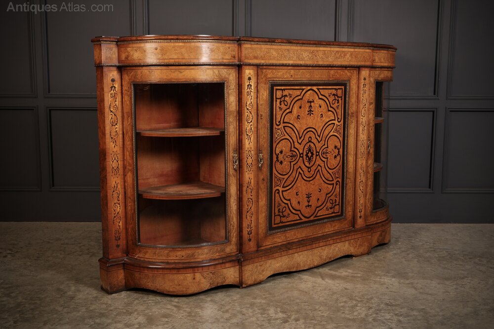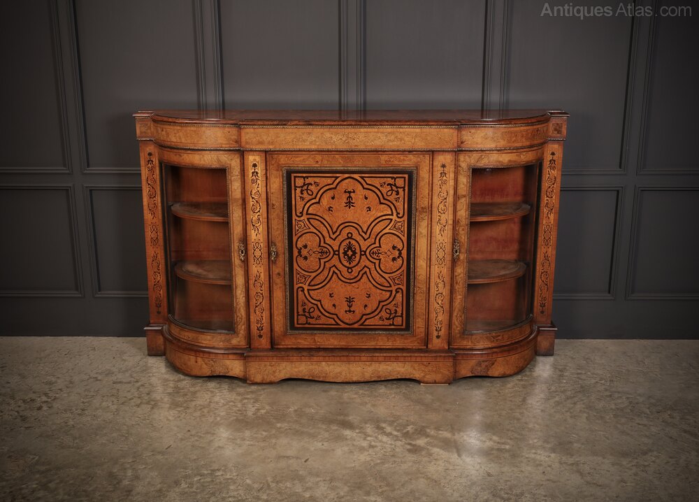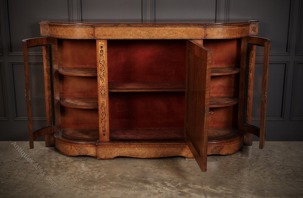 Victorian Burr Walnut Marquetry Inlaid Credenza
