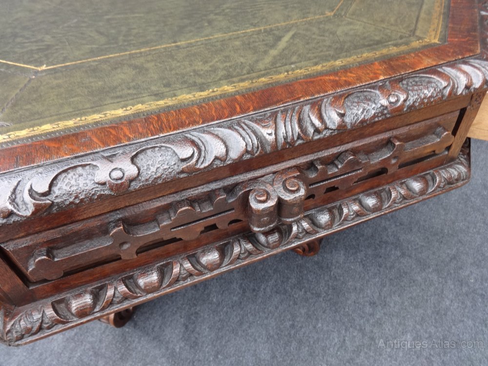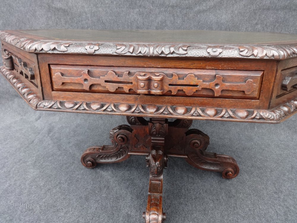 Victorian Carved Oak Library Table