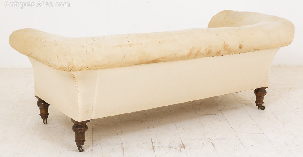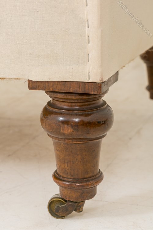 Victorian Chesterfield standing on brass castors and ring turned legs.