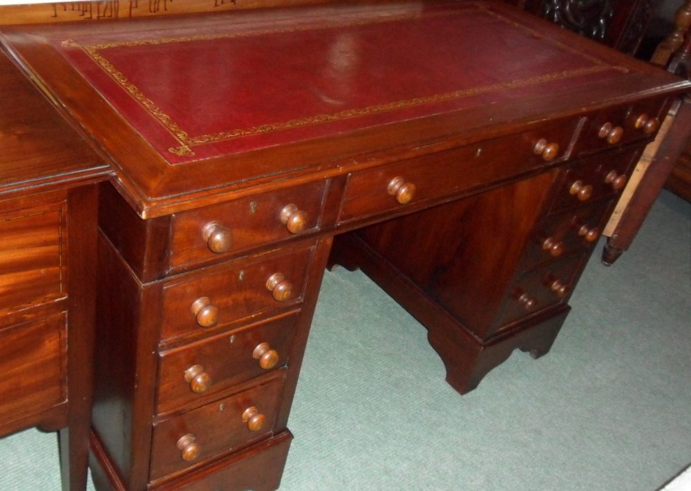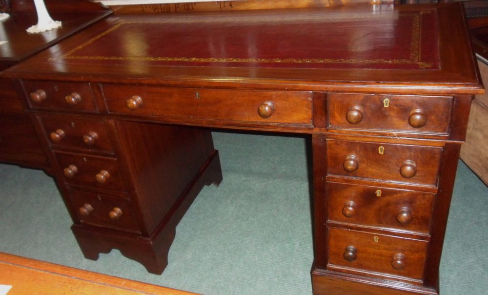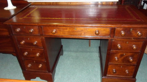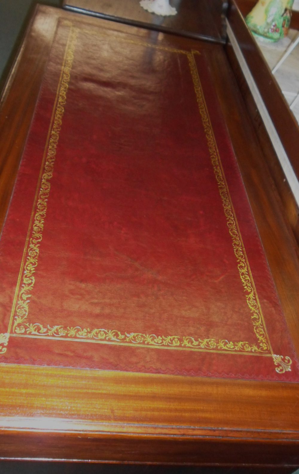 no272-victorian mahogony leather top pedestal desk in lovely condition