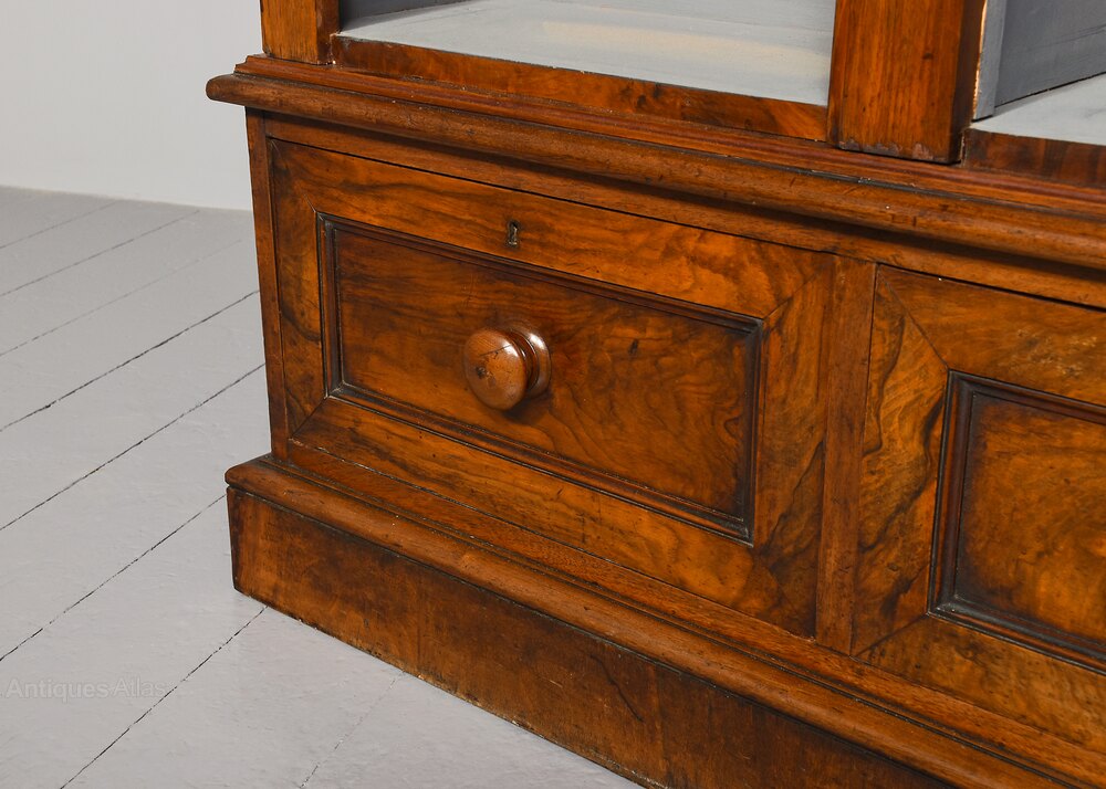 Victorian Figured-walnut Three-section Bookcase