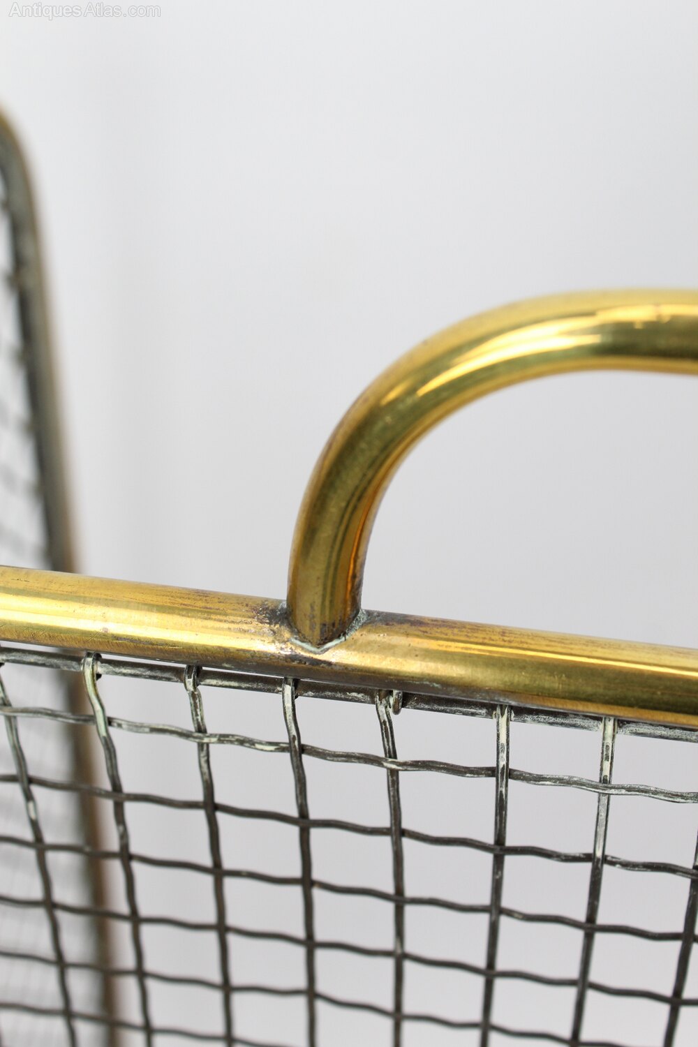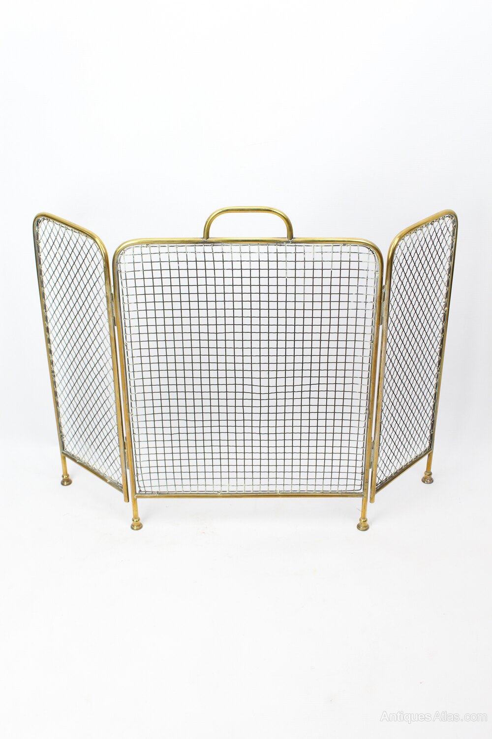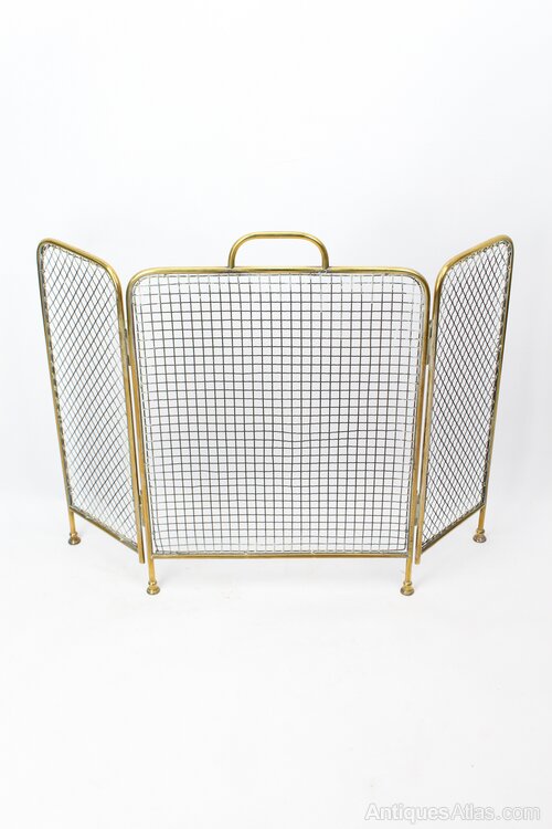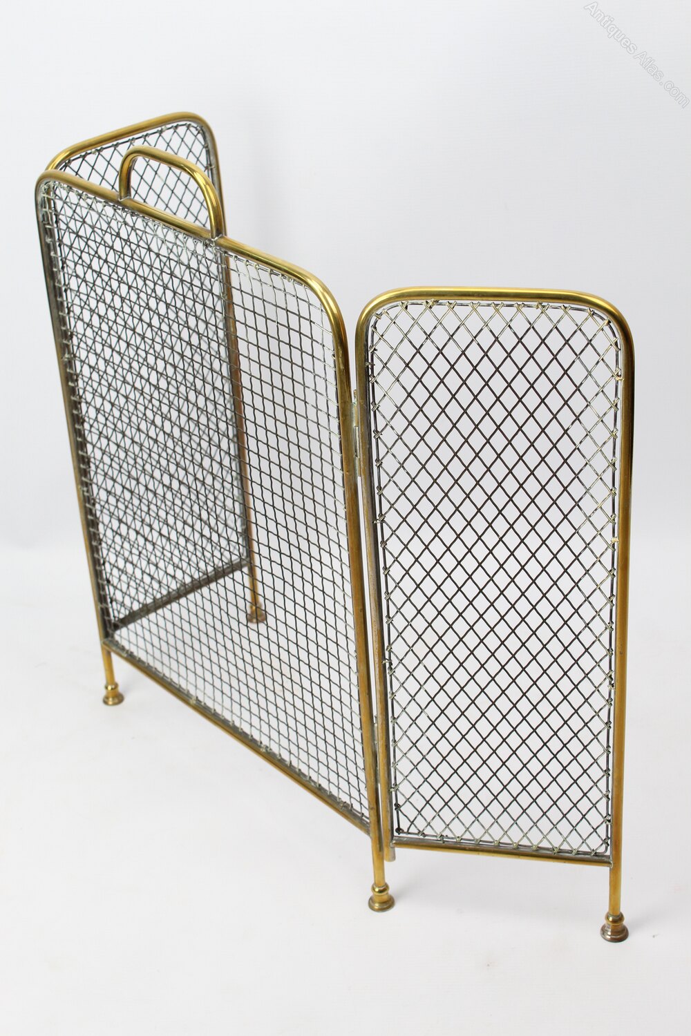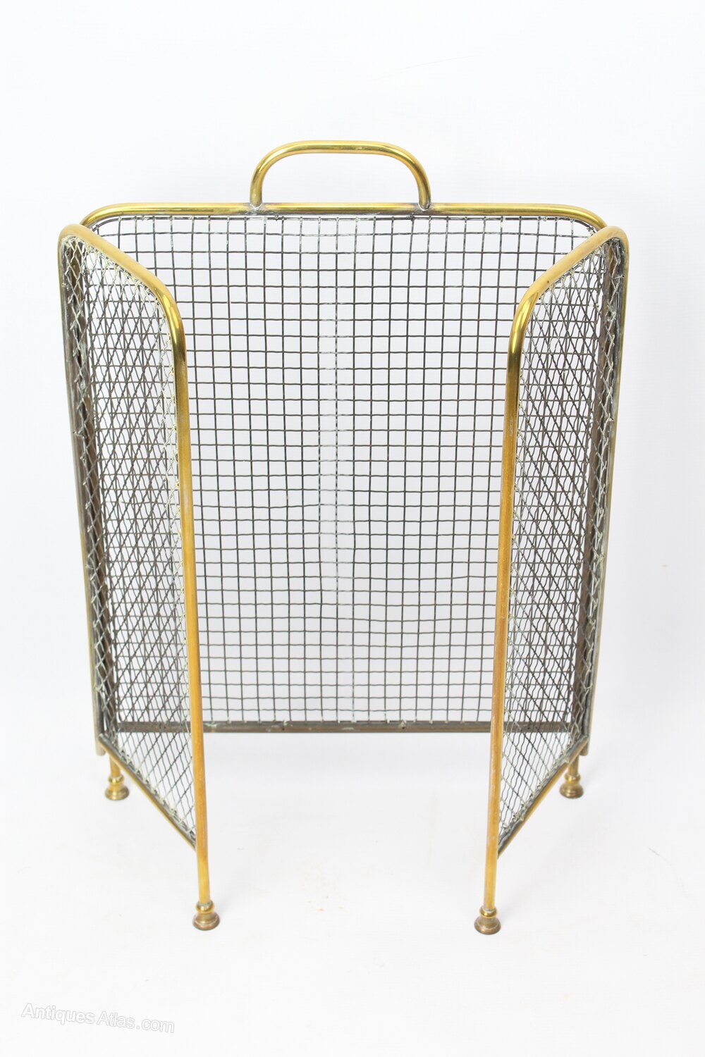 A charming antique Victorian brass folding fire guard dating from circa 1890. The polished tubular brass frame has a mesh infill and a useful carry handle to the top. It stands on elegant small turned brass feet. The side panels fold away on brass hinges making it easy to store when not in use.