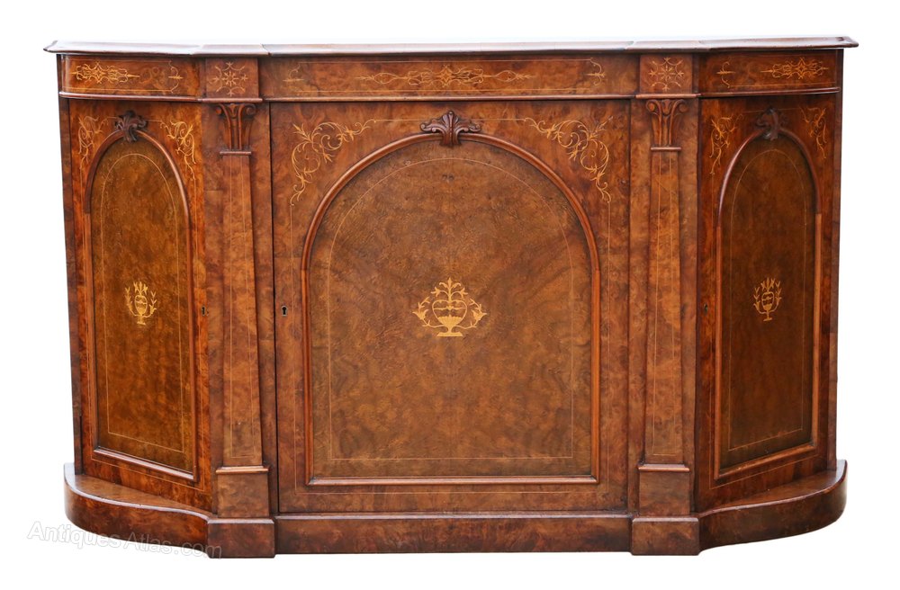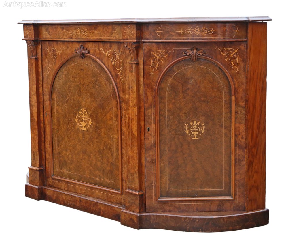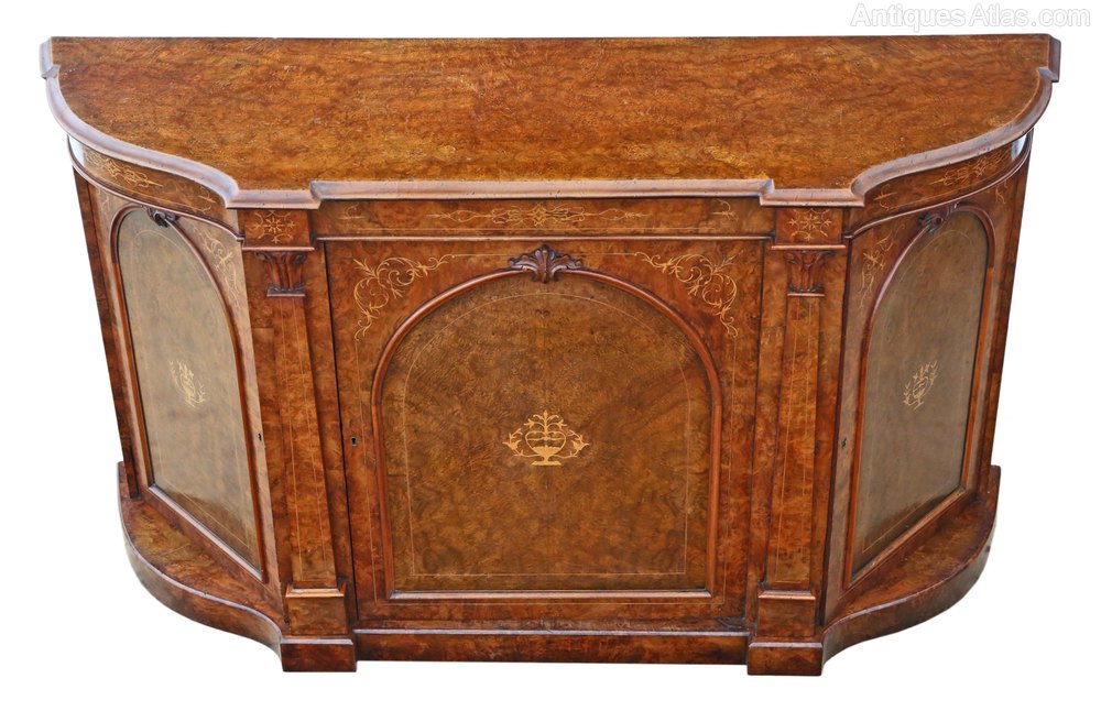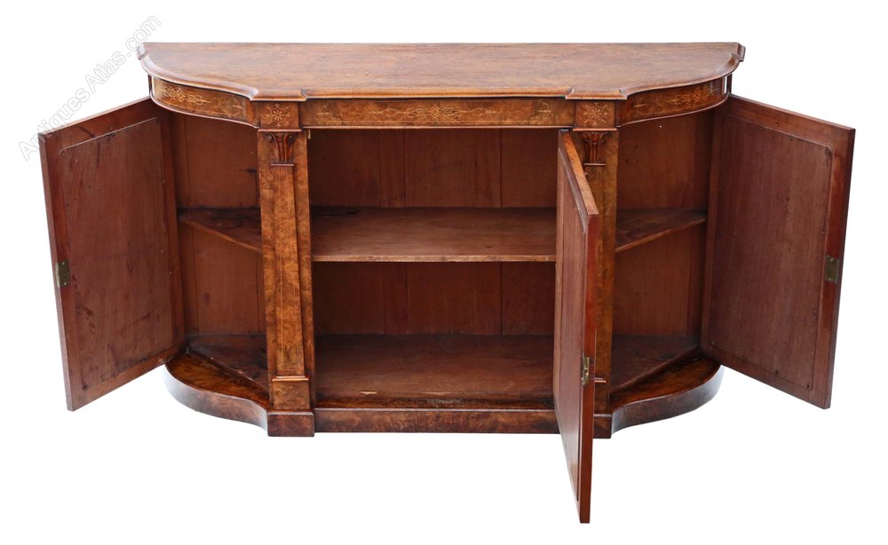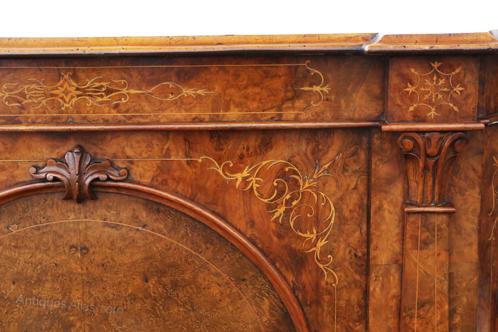 Victorian Inlaid Burr Walnut Credenza Sideboard