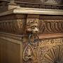 The dresser has lovely carvings throughout and a lion's head with a brass ring hanging from their mouth at each end of the drawer and cornice.