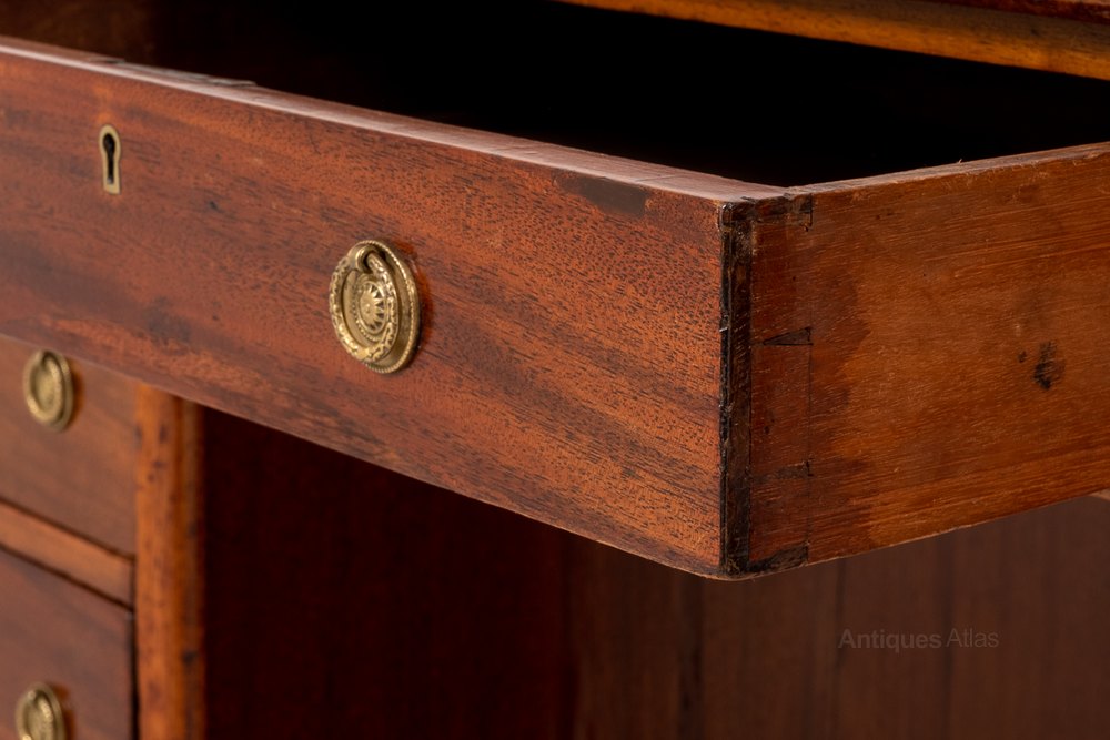 The Desk Features 9 Graduated Mahogany Lined Drawers and is of a Rounded Corner Form.
