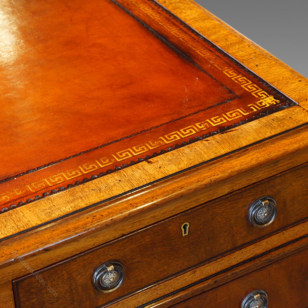 The leather inset writing surface is hand dyed and then gilt tooled by hand.