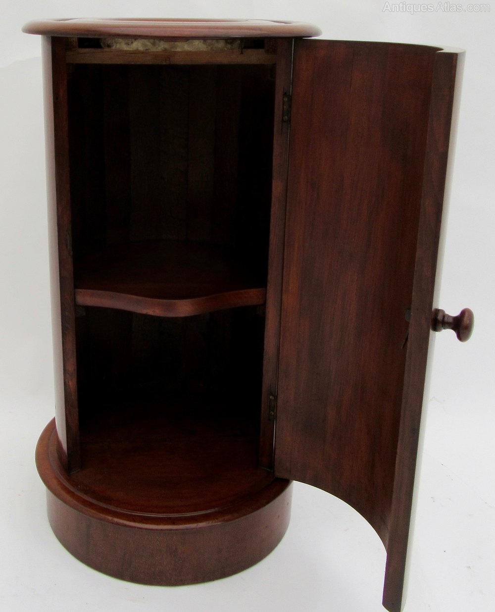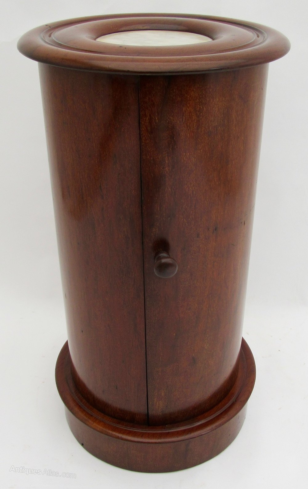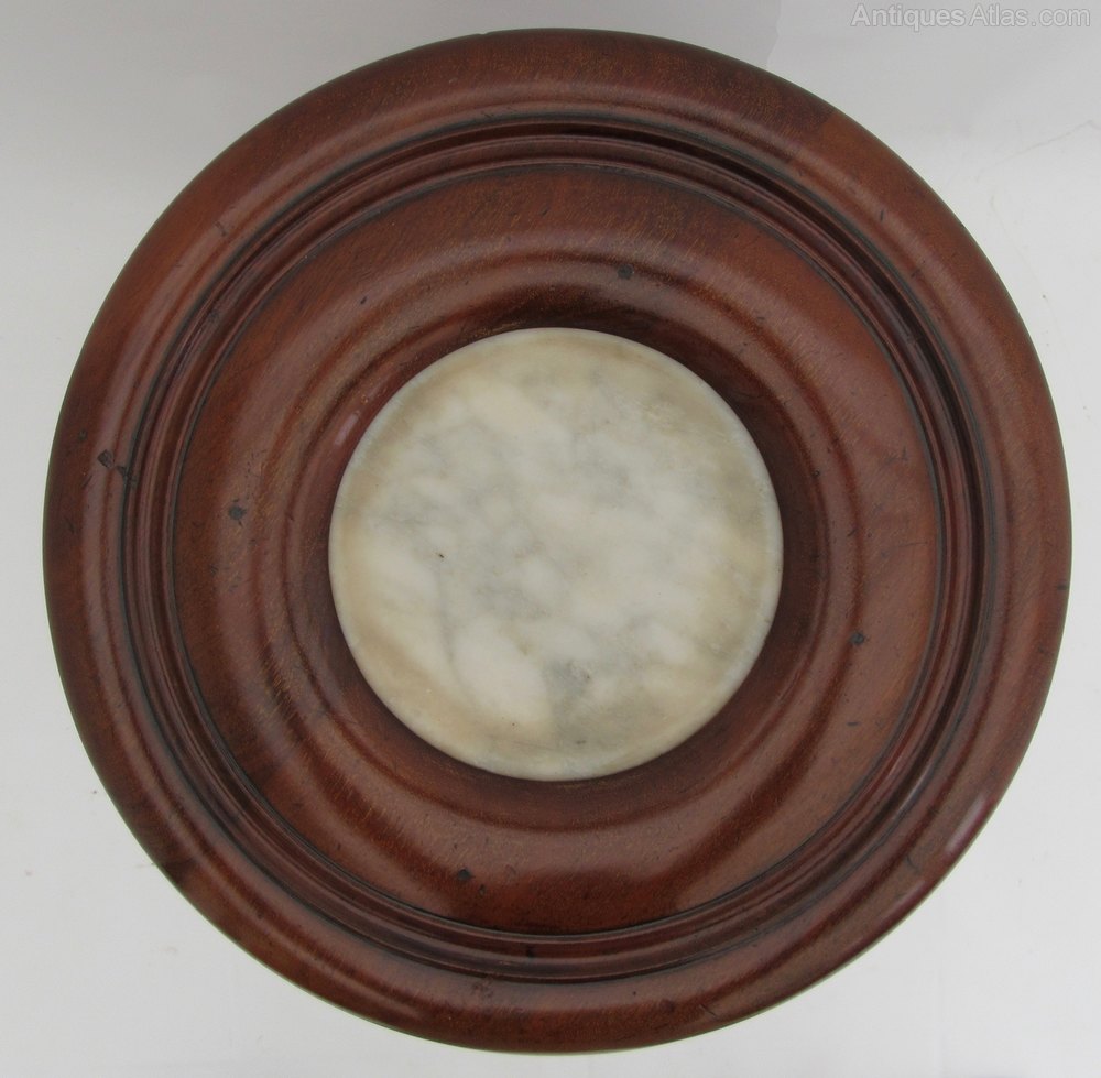 A Victorian mahogany round marble top pot cupboard. The first thing I will say about this cupboard is that most I have seen are always chipped around the base, this one doesn't have a single chip it must have been in the same position for a long time. The bull's eye turned top has a white and grey unbroken marble.