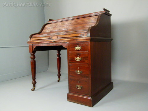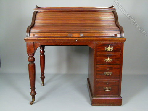 Victorian Mahogany Tambour Fronted Roll Top Desk