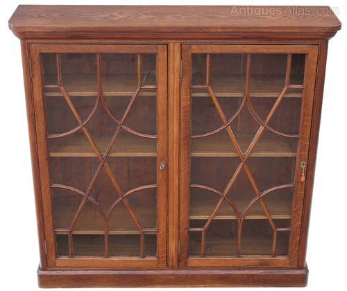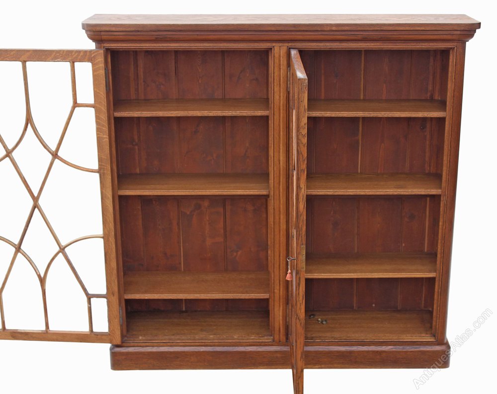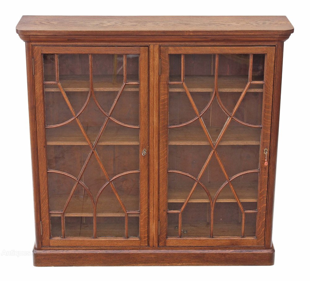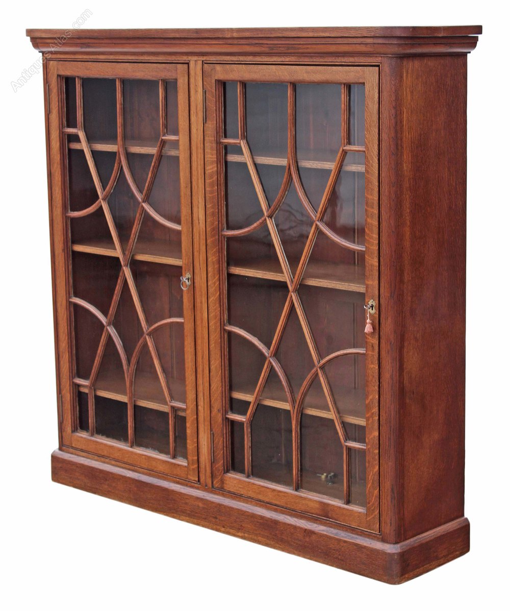 Antique quality Victorian oak astral glazed bookcase or display cabinet.