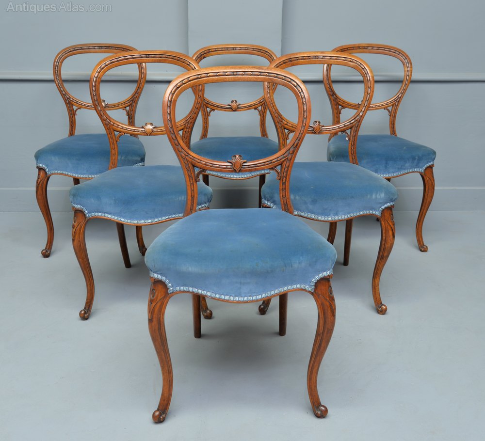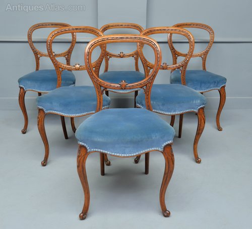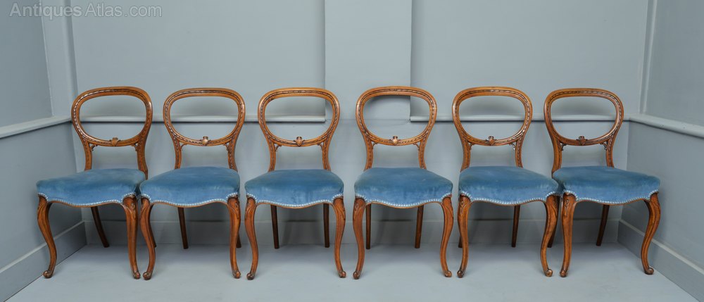 Victorian Set Of Six Walnut Dining Chairs