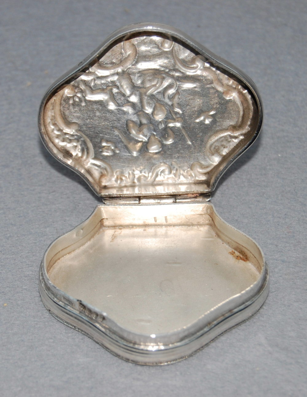 A Dutch Victorian silver snuff or pill box with import marks for London 1899. Good quality, no damage and measures 2.25" x 1.9" x 0.5", weighs 52gms.