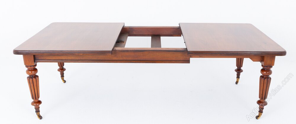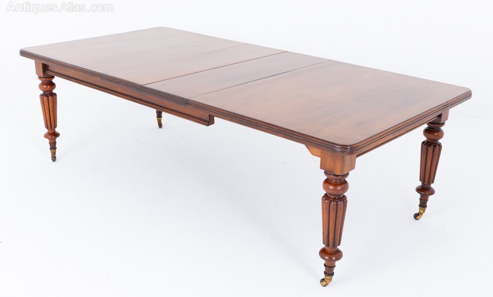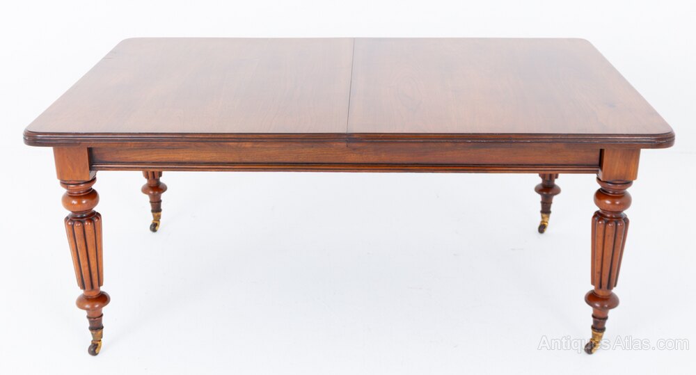 A fine Victorian walnut extending dining table, raised upon elegant turned and fluted legs fitted with brass castors.