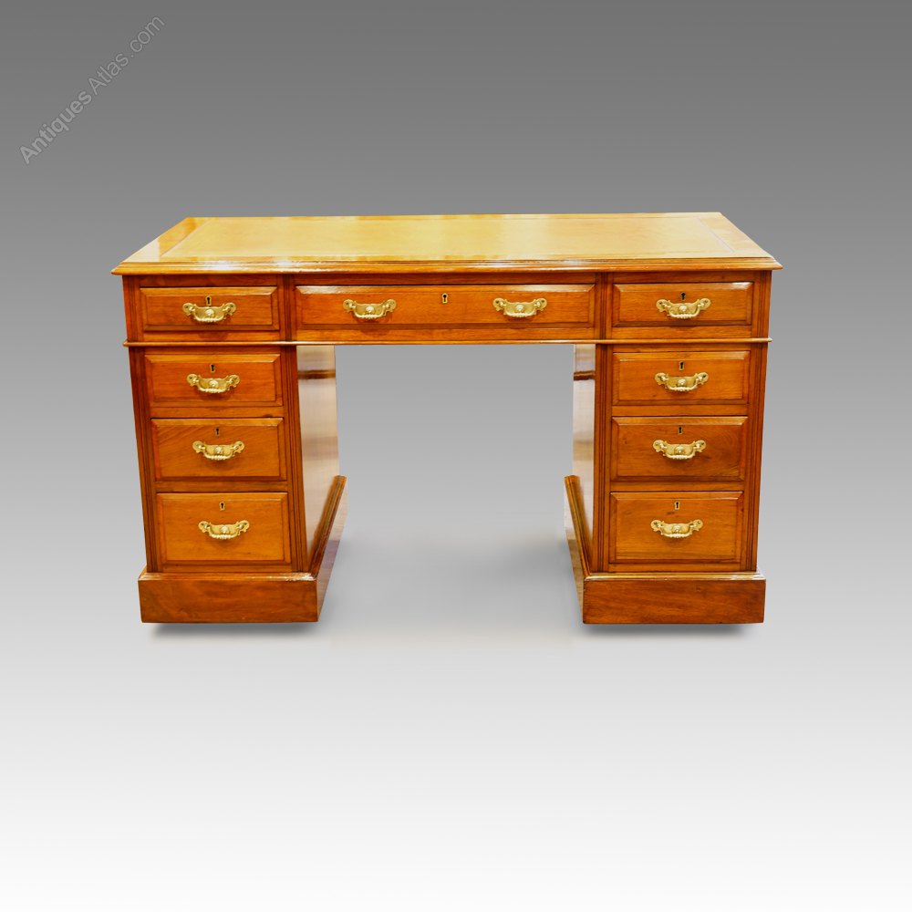 Late Victorian walnut pedestal desk