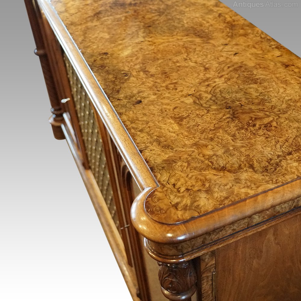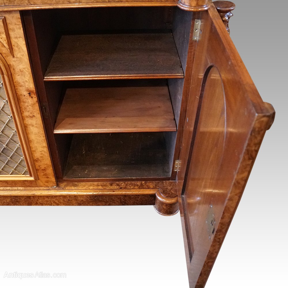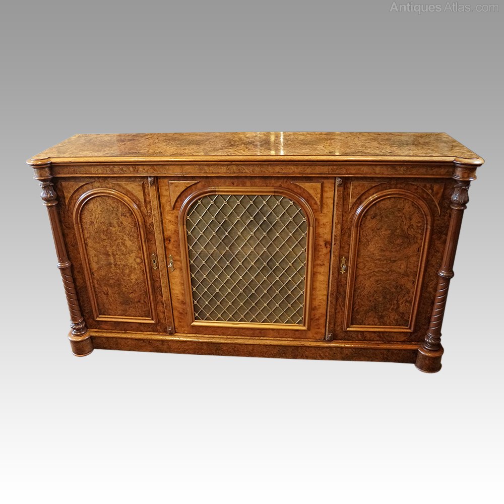 Antique Burr Walnut Cabinet Demi Lune Sideboard