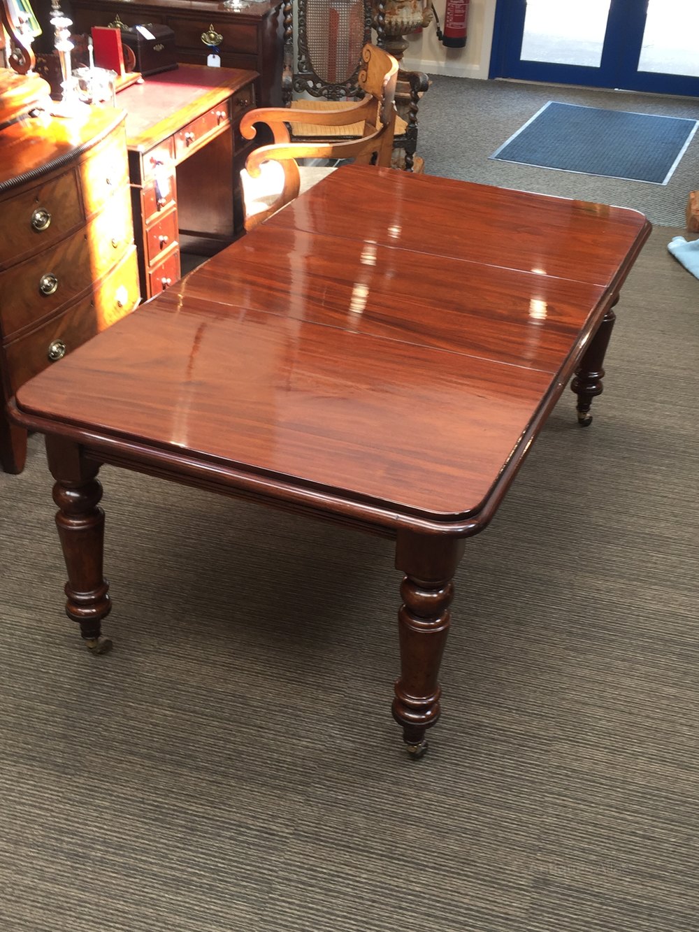 striking turned legs standing on brass castors.