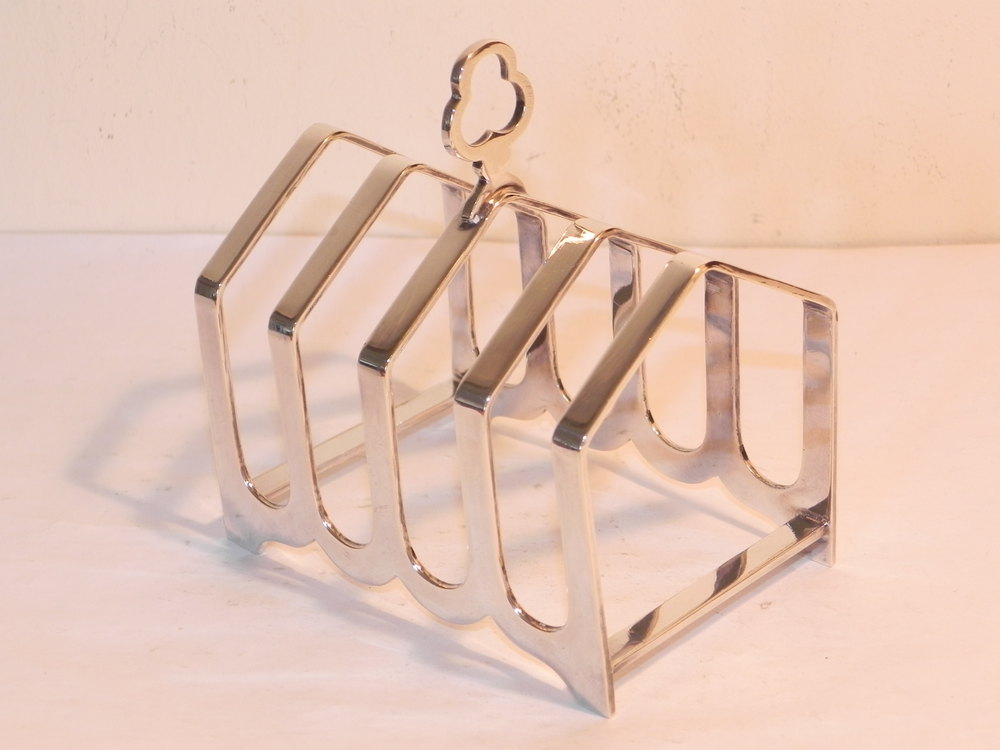 Superb! Excellent quality and in very good condition, this substantial Silver Plated Toast Rack is just fabulous! Appropriately stamped/marked for Cooper Brothers, respected silversmith of Sheffield, England. It stands c. 4." inch tall to the top of the nicely trefoil shaped handle. With a width of 3.5/8" inch it is a perfect size for the breakfast table - excellent condition all round - All in all a wonderful period piece that will not disappoint!.