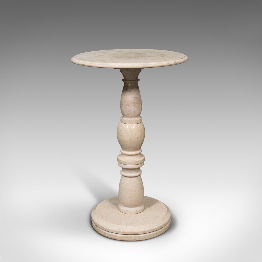 Vintage Baluster Side Table, English, Travertine