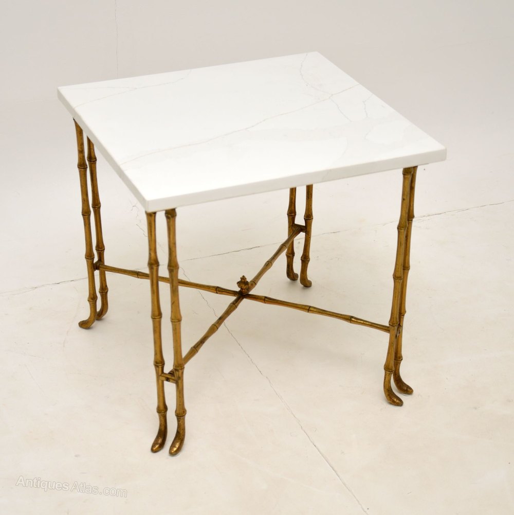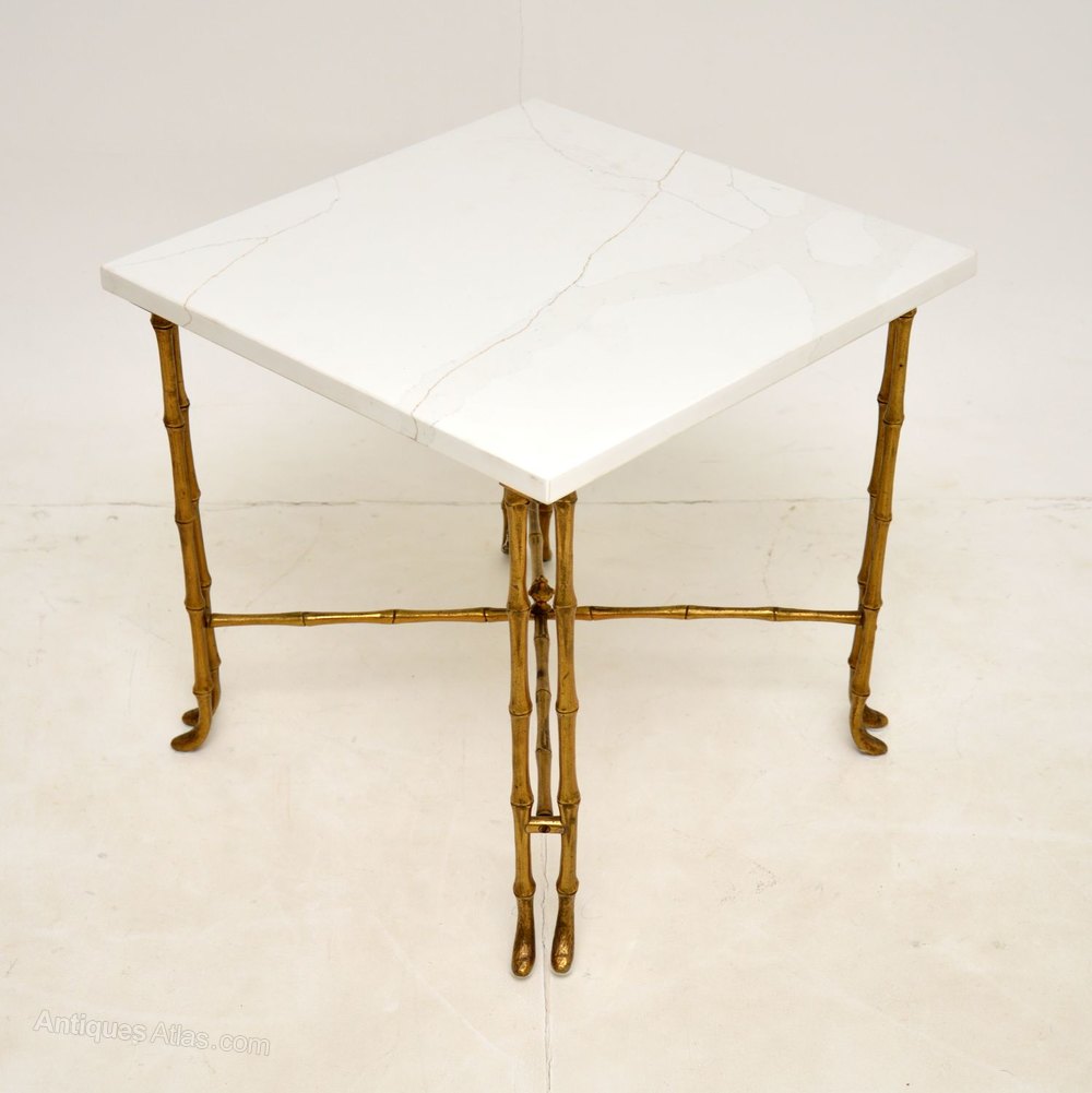 Vintage Brass & White Quartz Side Table
