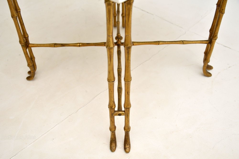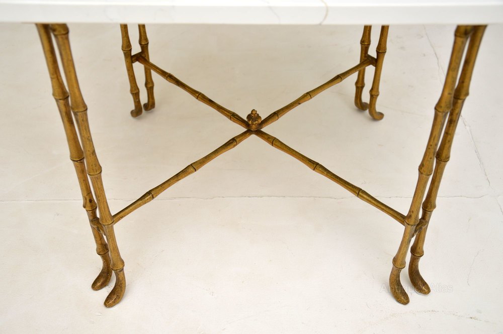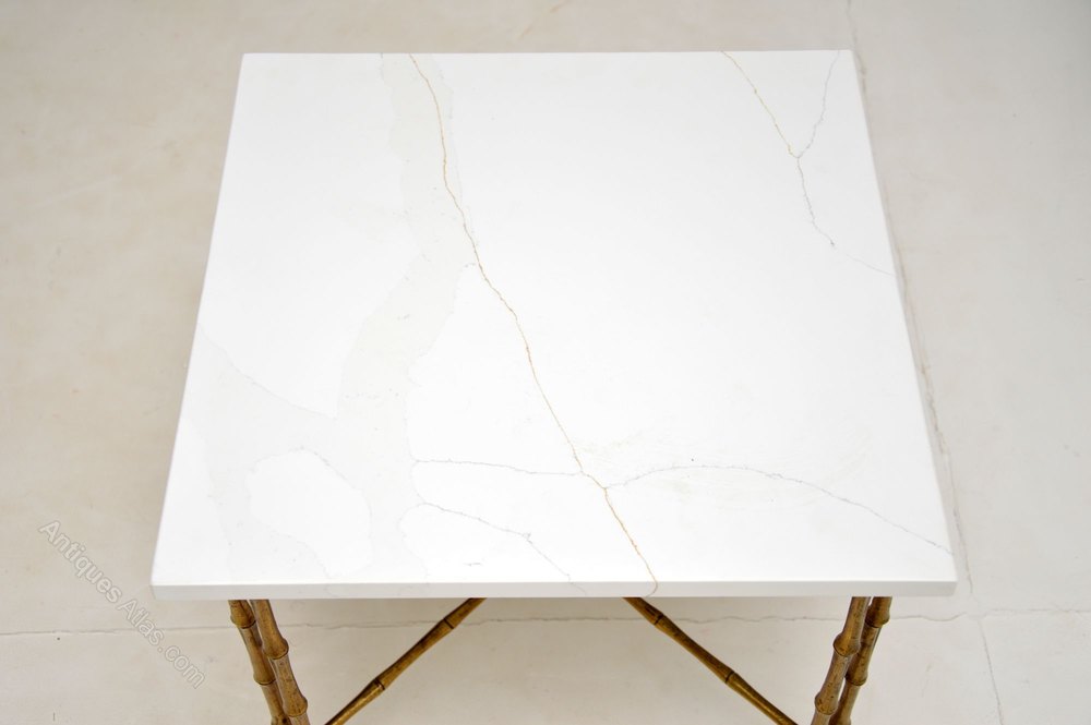 The frame is in great original condition, the brass has some minor surface wear and a lovely patina. We have just had the white quartz newly cut for this table, its in excellent condition.