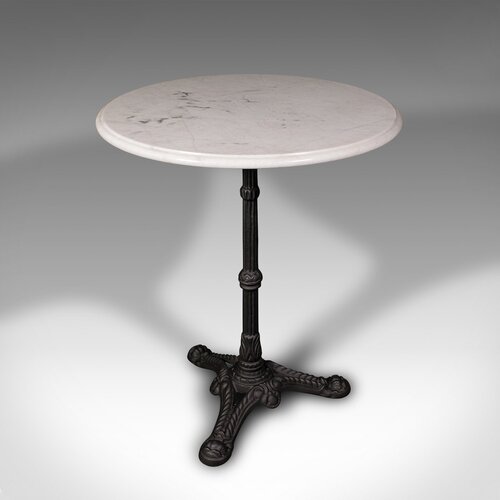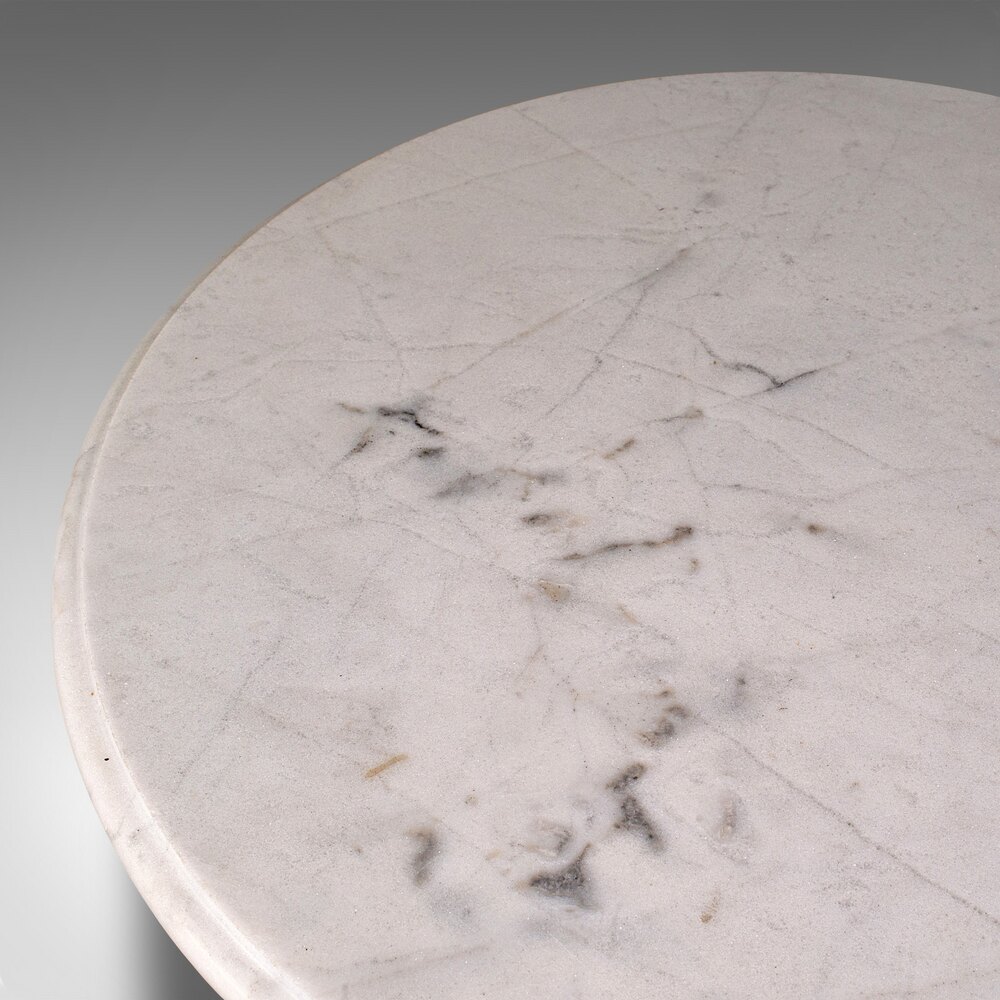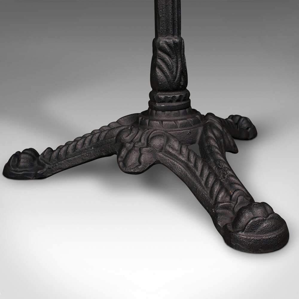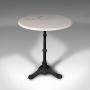 This is a vintage cafe table. A French, marble and cast iron wine or garden table, dating to the mid 20th century, circa 1950.