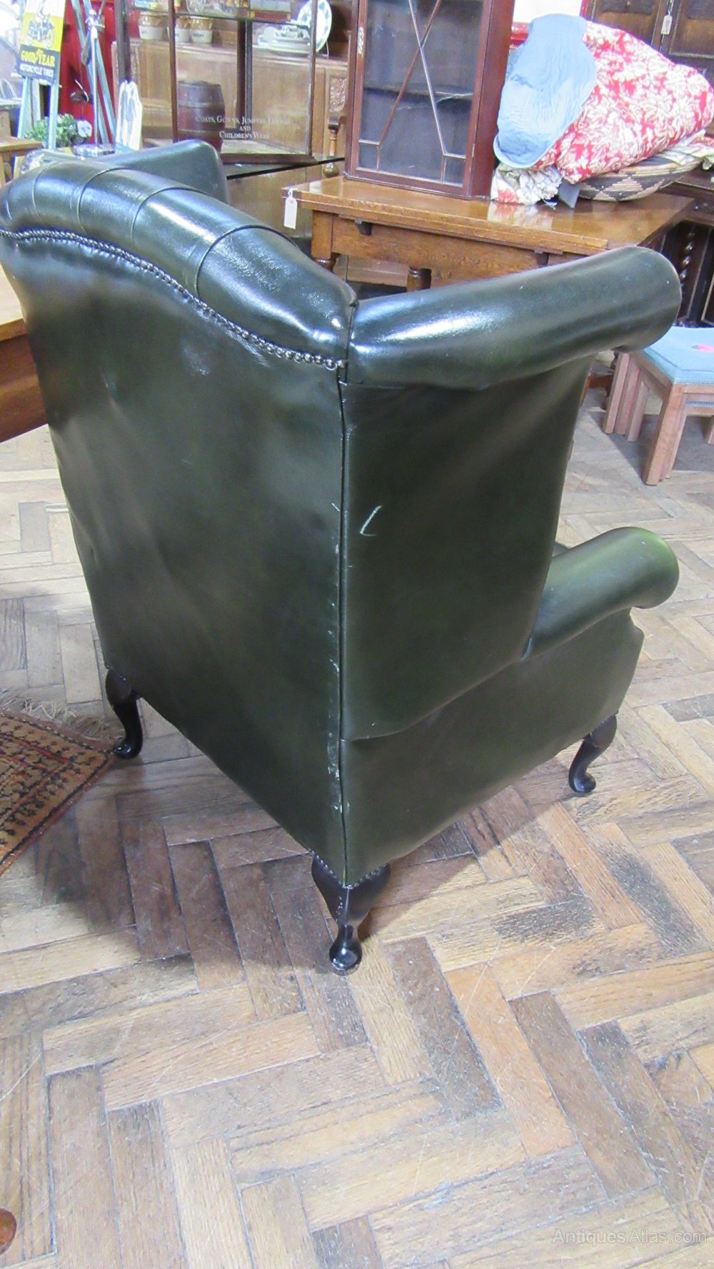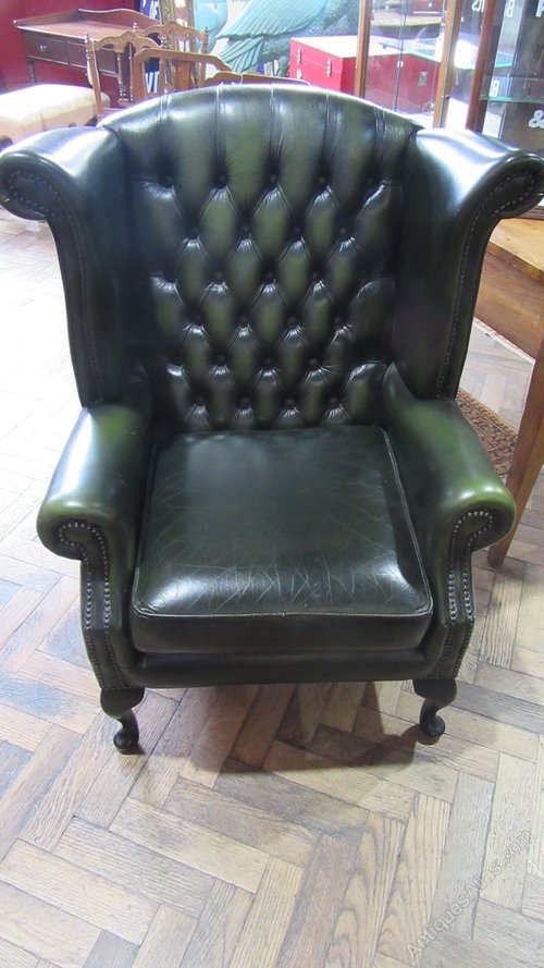 Vintage Deep Buttoned Leather Wing Armchair