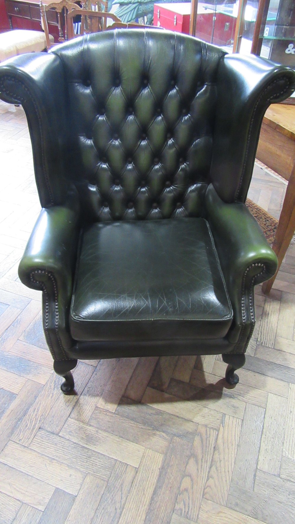Vintage Deep Buttoned Leather Wing Armchair by Thomas LLoyd with removable cushion 103 cm high 90 cm wide,75 cm deep