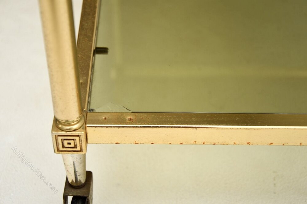 This is in very condition for its age, there is just some minor surface wear and patina here and there. One of the glass shelves has an extremely shallow chip on one corner, we have faced it upwards so it is seen in the close up images. However, the shelf can be turned to face to other way, to hide it completely.